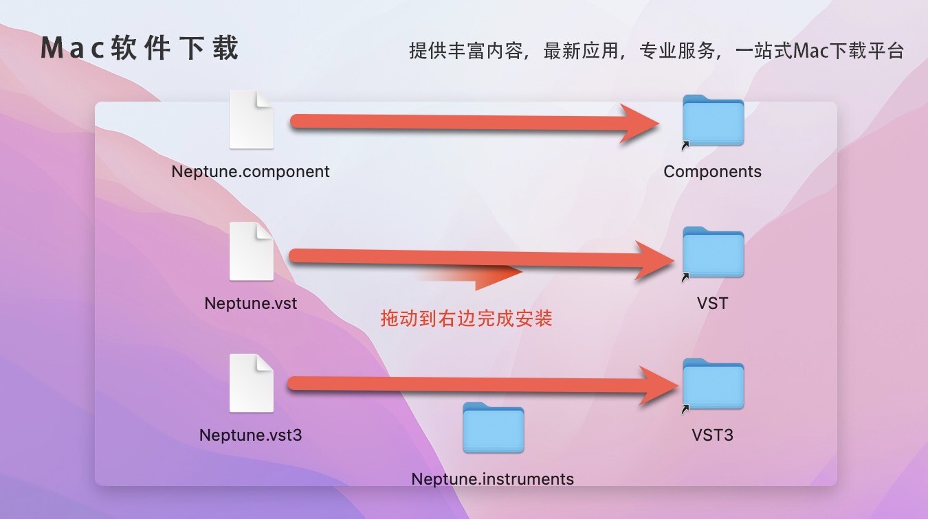 插件需要搭配Studio One一起使用,请先安装Studio One!插件安装包下载完成后,将左侧文件拖动到右侧文件夹即可