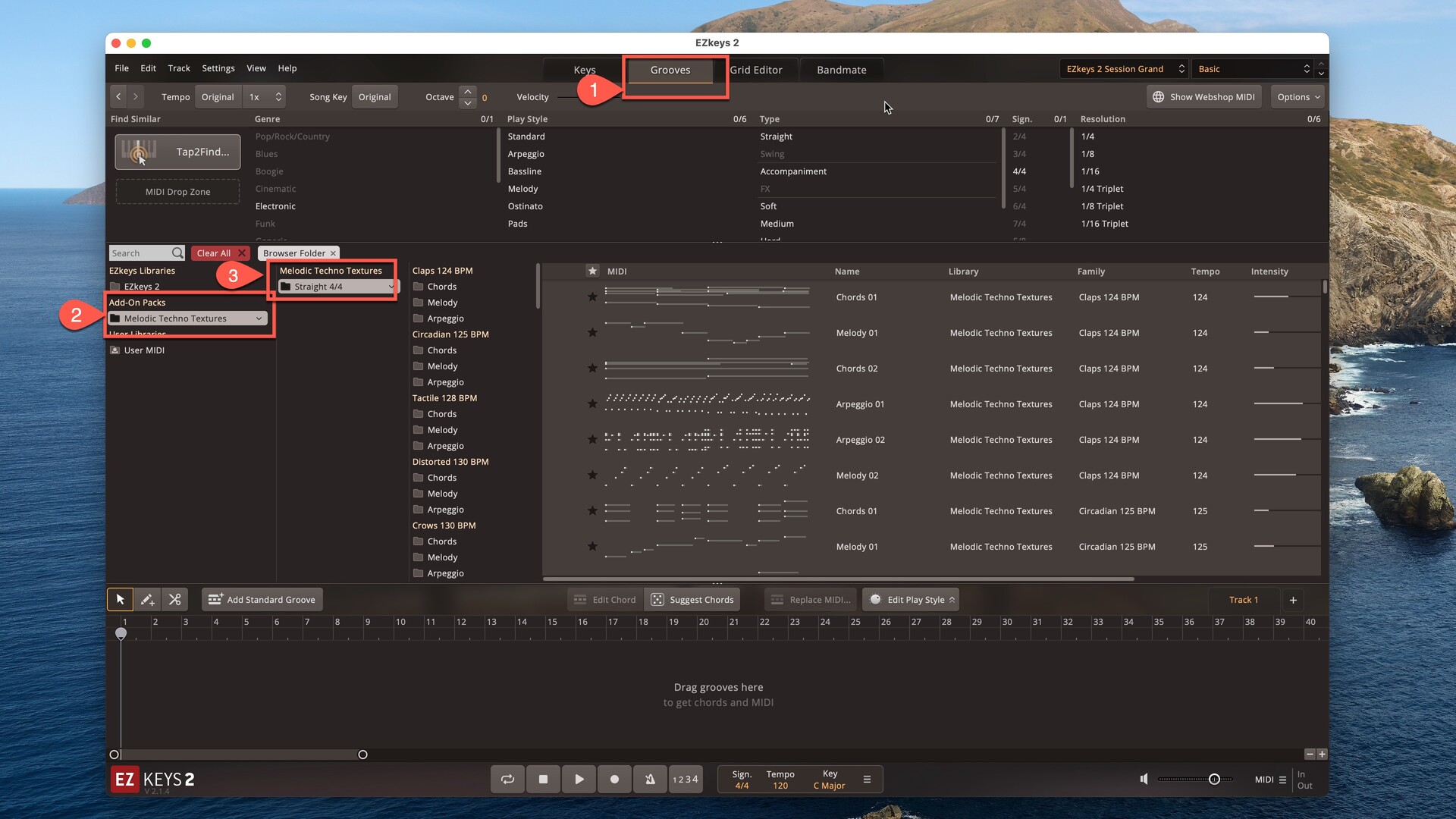 在单调重复的电子舞曲节拍之上,蕴藏着旋律的魔力:断奏般的和弦、引人入胜的旋律以及层层叠叠的琶音合成器和贝斯。EZkeys MIDI 音色库的灵感源自对电子舞曲最广泛的定义,囊括了所有这些元素,甚至更多。它包含超过 30 首不同的“歌曲”,分别由和弦、旋律和琶音部分组成,为你提供丰富而引人入胜的旋律纹理,涵盖从轻柔舒缓到嗡嗡作响、频闪闪烁、强劲脉动的各种风格。
