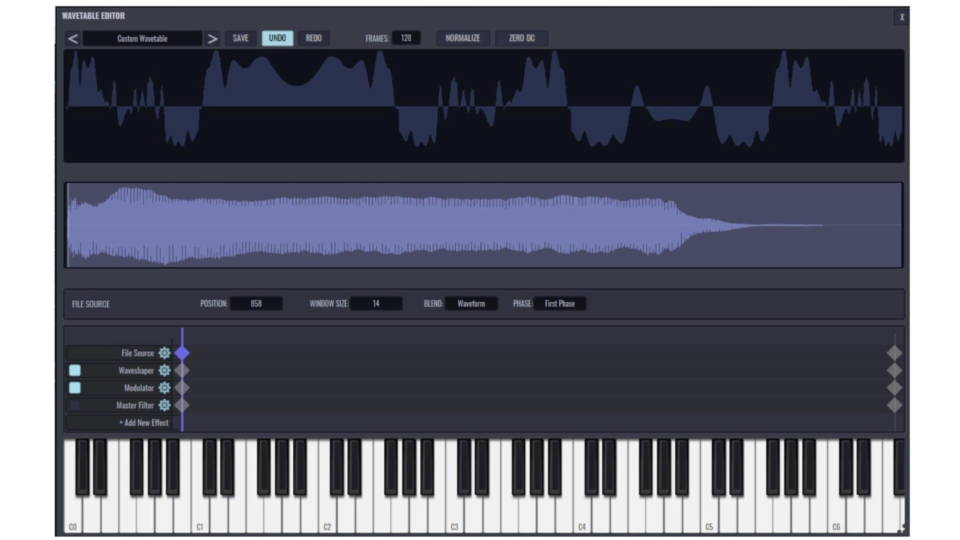 SynthMaster 3 配备了功能全面的波表编辑器,用于创建波表。波表可以使用单周期波形或采样/波表文件创建: