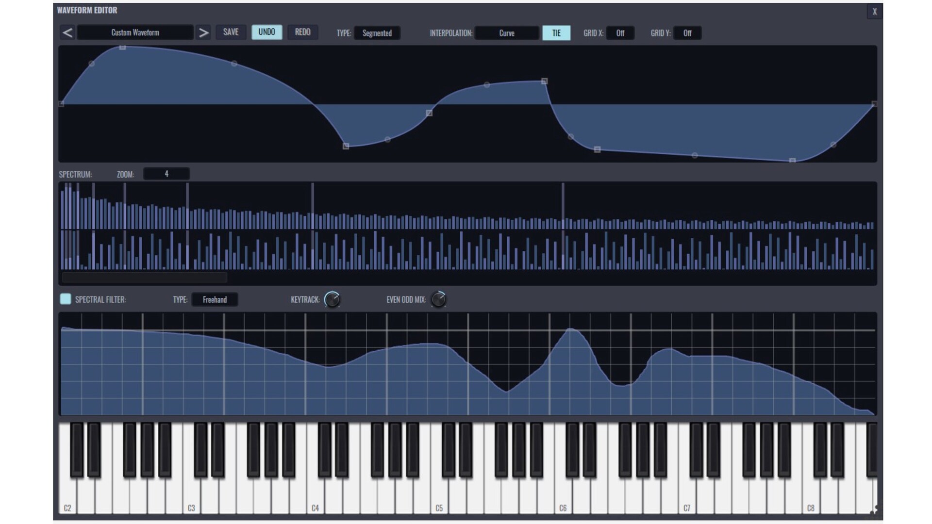 SynthMaster 3 配备了一个功能全面的波形编辑器,用于创建单周期波形。