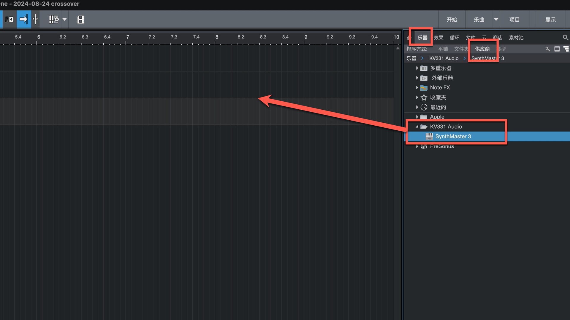 打开studio one 在乐器 - 供应商中即可找到安装好的插件,拖动到左侧空白位置即可