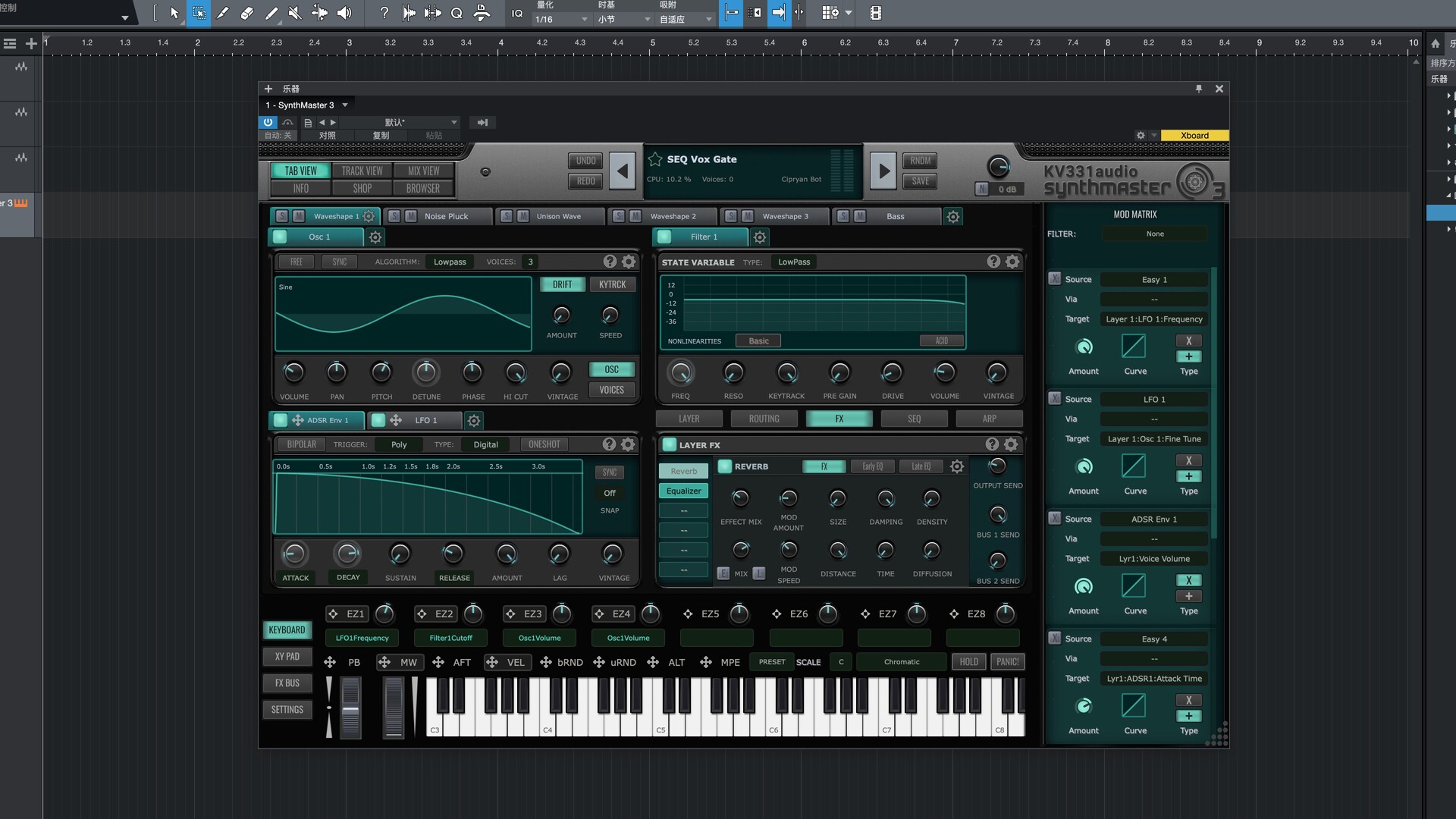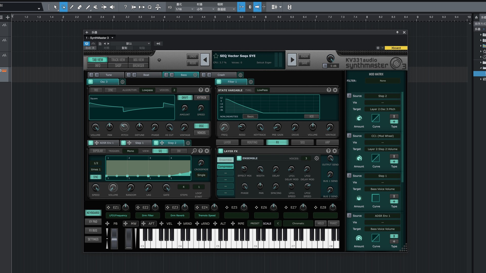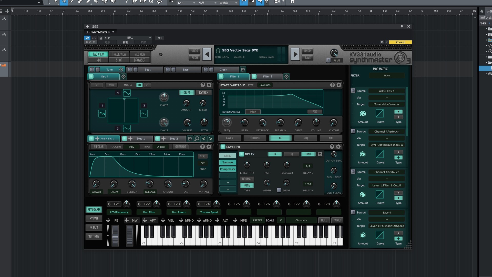 SynthMaster 3 是 KV331 Audio 的旗舰级全能模块化软件合成器,支持 VST2、VST3、AudioUnits 和 AAX 格式。它拥有多种合成方法,包括模拟合成、加法合成、矢量合成、波表合成、颗粒合成、相位调制、相位失真、频率调制、脉冲宽度调制、环形调制、物理建模和 SFZ 采样回放。它内置 3150 个由世界一流声音设计师团队精心打造的工厂预设,这些设计师包括:Arksun、AIyn Zahev、BigTone、Cipryan Bot、Davide Puxeddu、Demis Hellen、Gercek Dorman、NatLife、New Loops、Nori Ubukata、Selcuk Ergen、Xenos Soundworks、XTD 和 Yuli Yolo。
