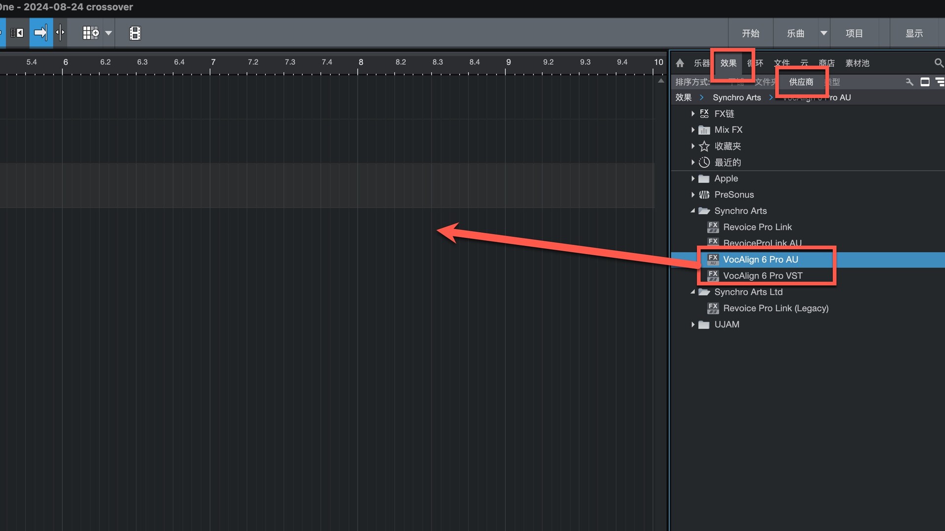 打开Studio One,在效果—供应商中找到安装好的插件,拖到软件空白处即可开始使用