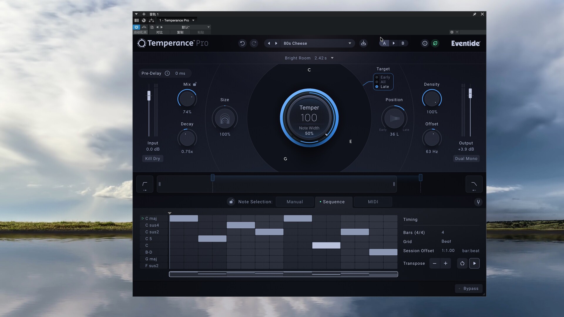 Eventide 正式推出 Temperance Pro。这款全新的混响插件建立在革命性产品 Temperance Lite 的基础之上,其首创了“音乐混响(musical reverb)”的概念,而 Temperance Pro 则进一步扩展了这一理念,新增 29 种模态空间(modal spaces)、高级音序功能(sequencing capabilities)、MIDI 控制,以及专门的模态(modal) 与调性(temper)控制,让用户能够以前所未有的方式塑造空间与音色。