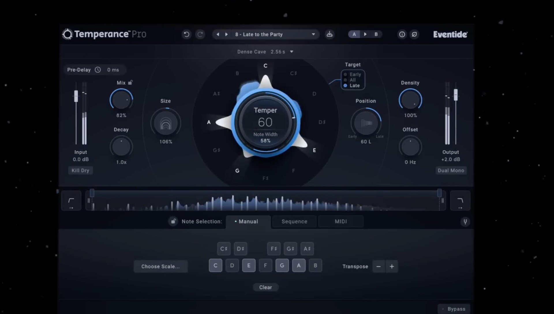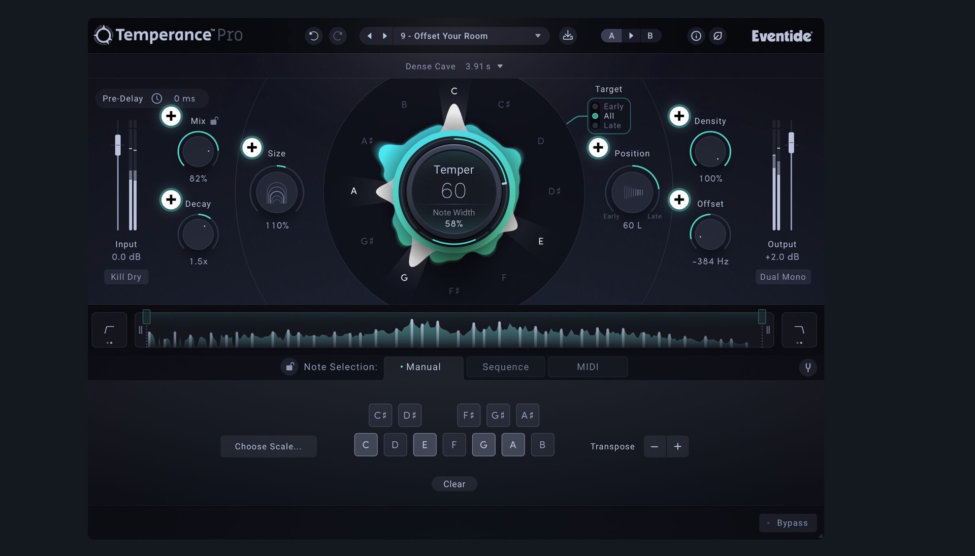 Temperance Pro 在这些功能的基础上,通过独特的模式功能来营造氛围,从而扩展了这些功能。密度,位置和抵消控制(右侧)。