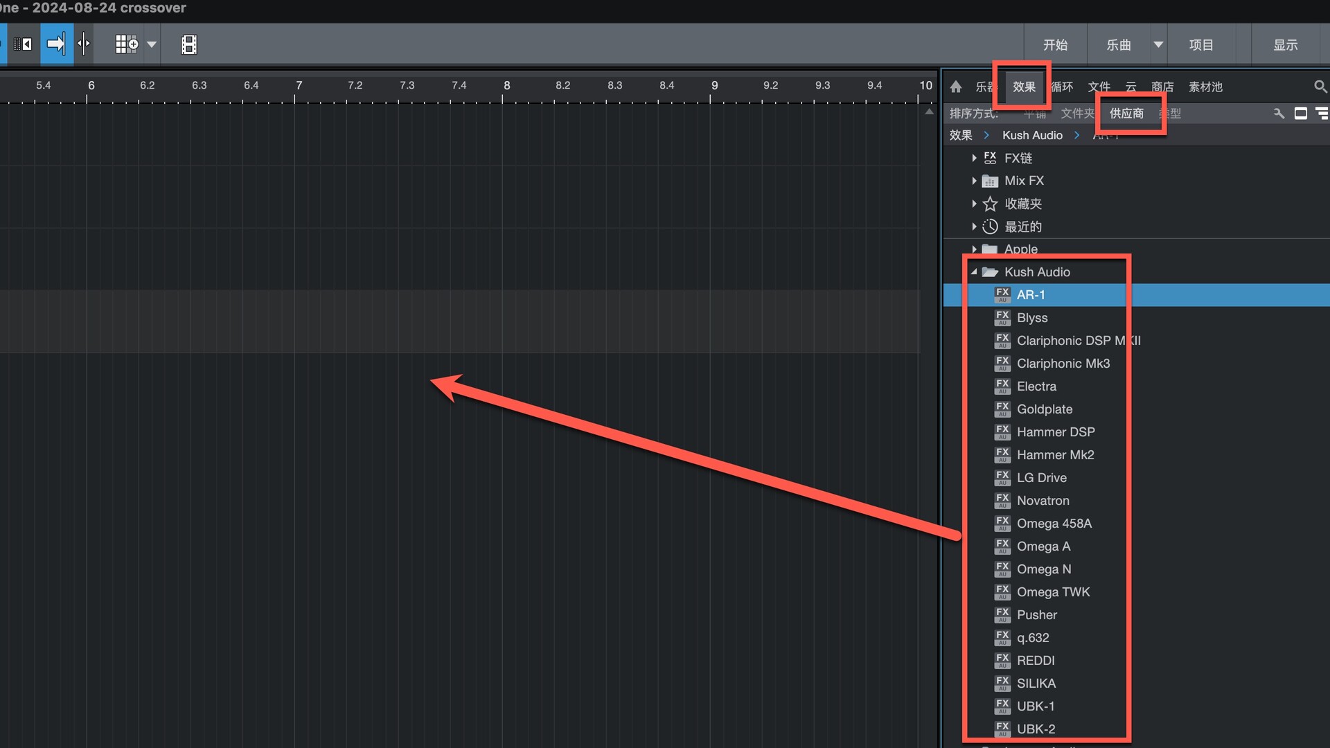 打开Studio One在效果-供应商下即可找到插件,拖动到左侧即可