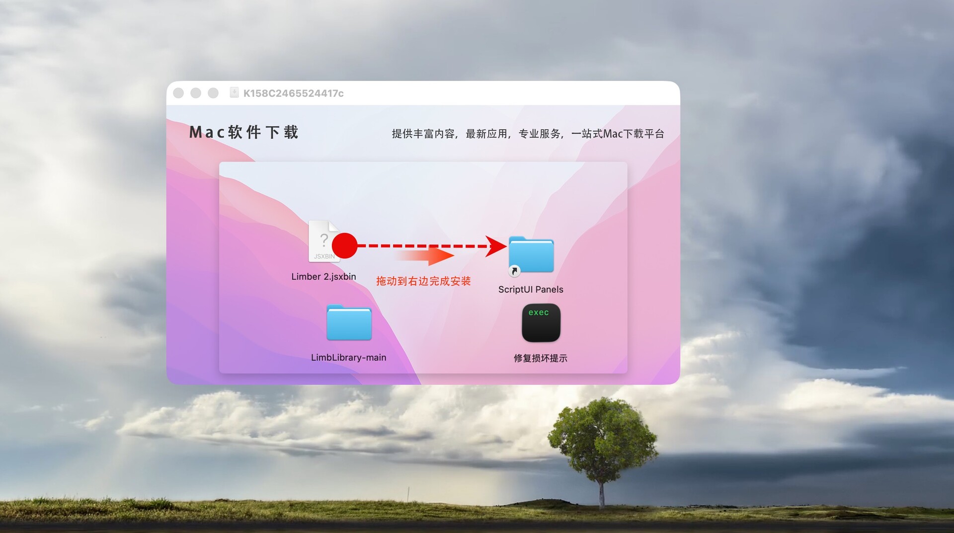将Limber 拖动到右侧的ScriptUI Panels文件夹中即可,如图