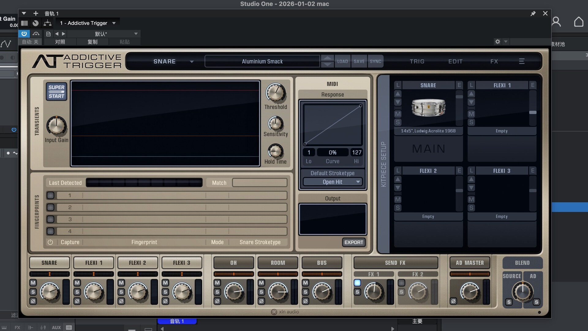 在 Addictive Trigger 的研发阶段,世界各地的用户反馈,在使用鼓组替换插件时,精准的打击乐检测至关重要。然而,现有的触发技术往往存在缺陷,需要大量的手动调整和修正。我们致力于打造超越现有产品的卓越性能,最终开发出一种全新的鼓组打击乐检测方法——音频指纹识别。我们的新系统采用 FFT 分析技术,即使在音源中存在大量麦克风串音或背景噪音的情况下,也能精准识别鼓声。它速度快、精度高,我们相信它将彻底改变您处理现场录制鼓组的方式。