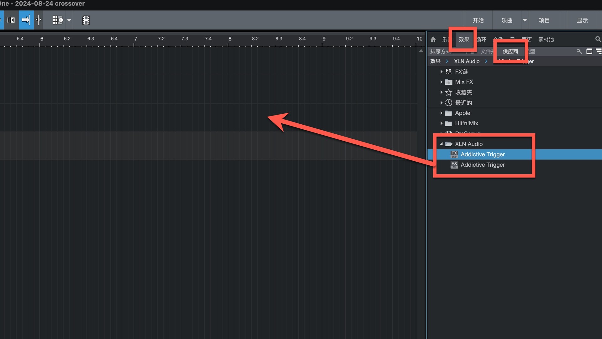 打开Studio One在效果-供应商下即可找到插件,拖动到左侧即可