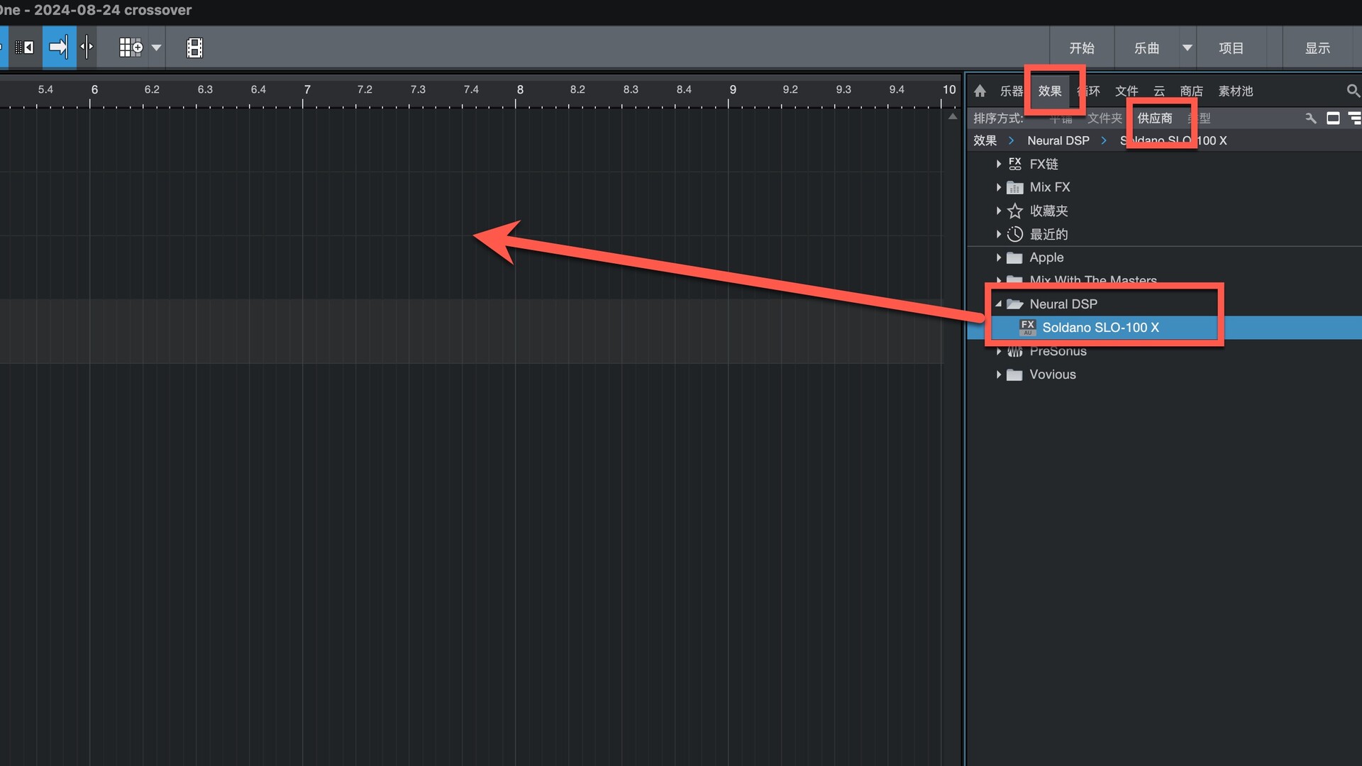 打开Studio One在效果-供应商下即可找到插件,拖动到左侧即可使用