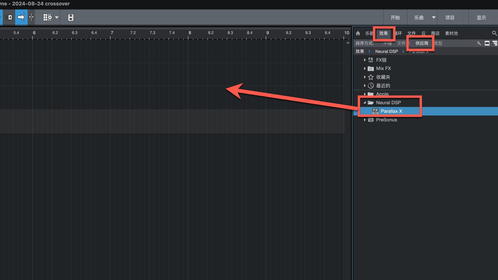 打开Studio One在效果-供应商下即可找到插件,拖动到左侧即可使用