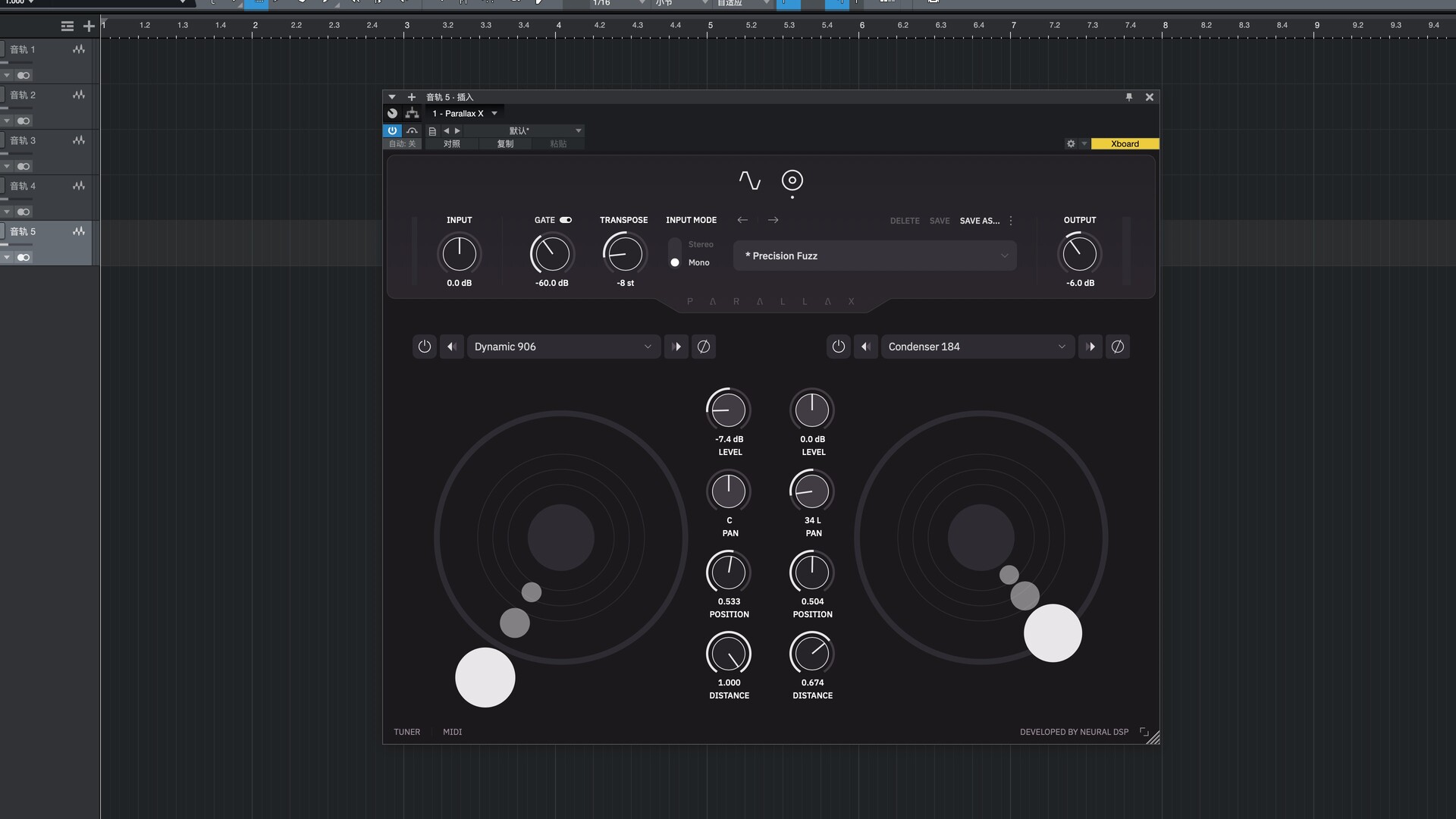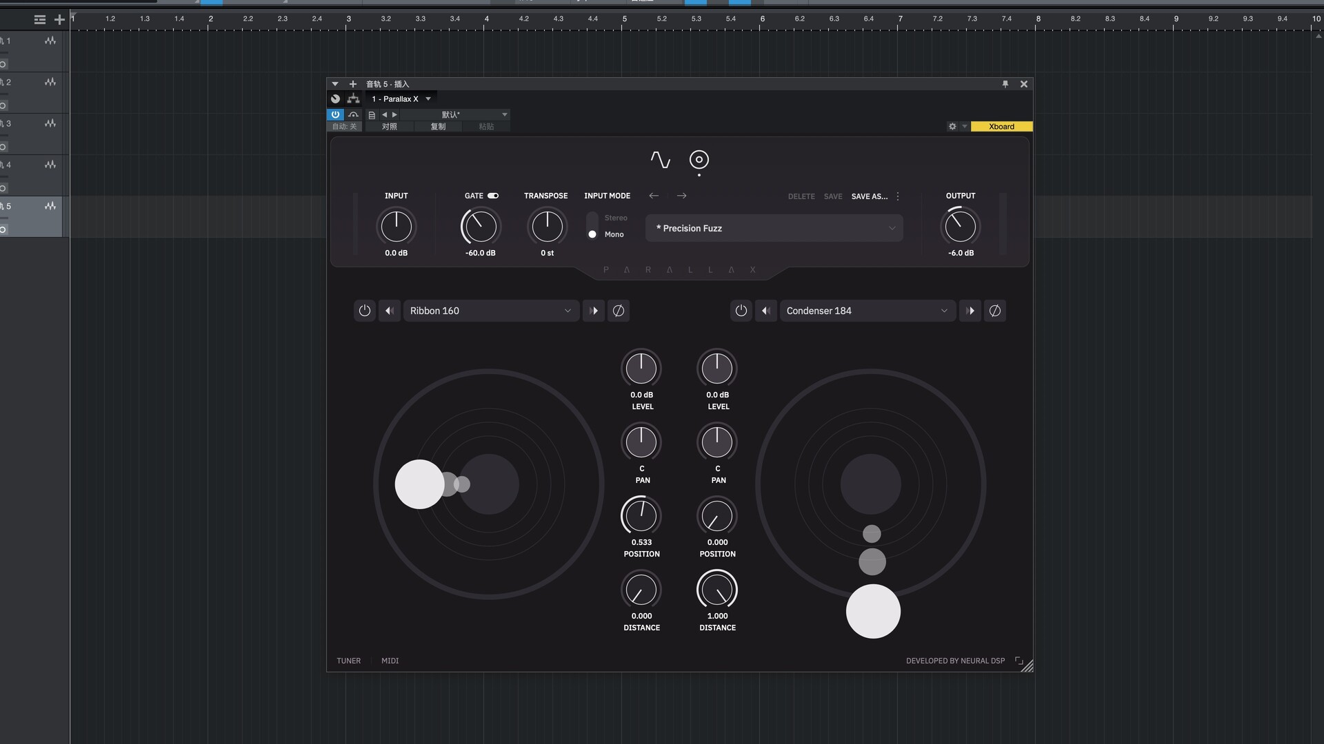 双轨器:将信号投射到模拟立体声场中,使您获得双轨录音的效果。