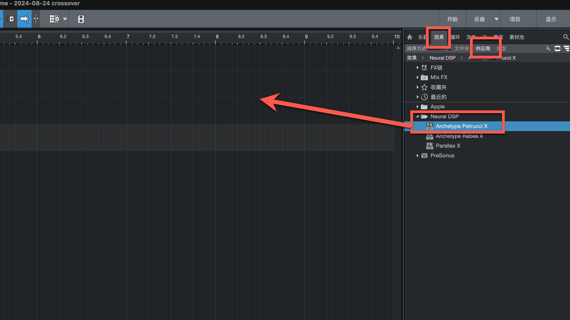 打开Studio One在效果-供应商下即可找到插件,拖动到左侧即可使用