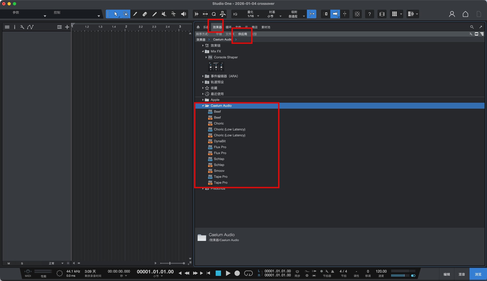 打开Studio One在效果-供应商下即可找到插件,拖动到左侧即可
