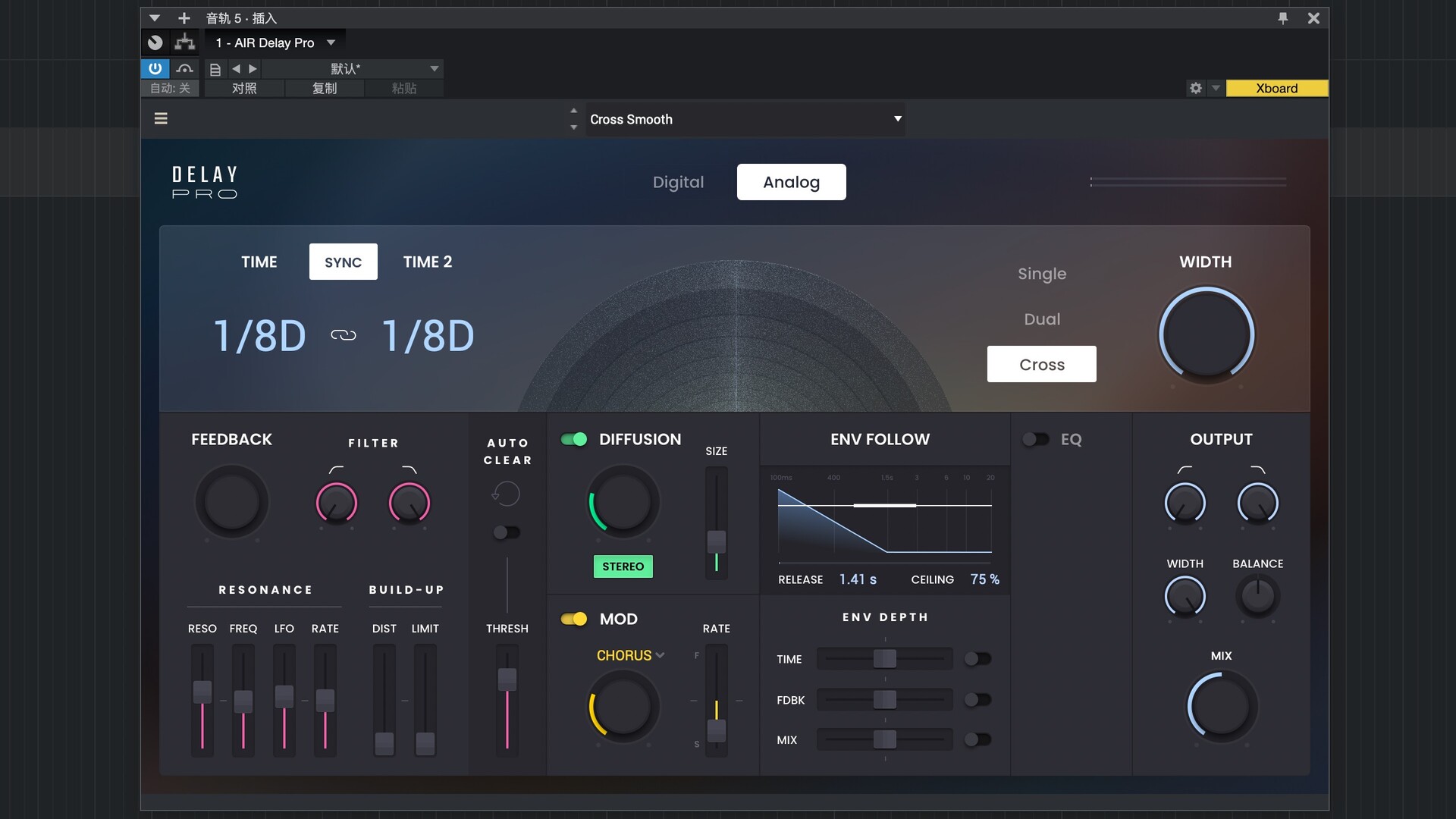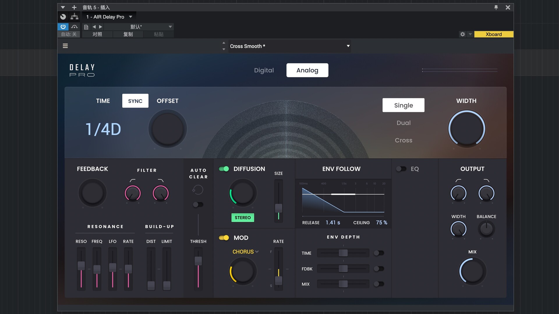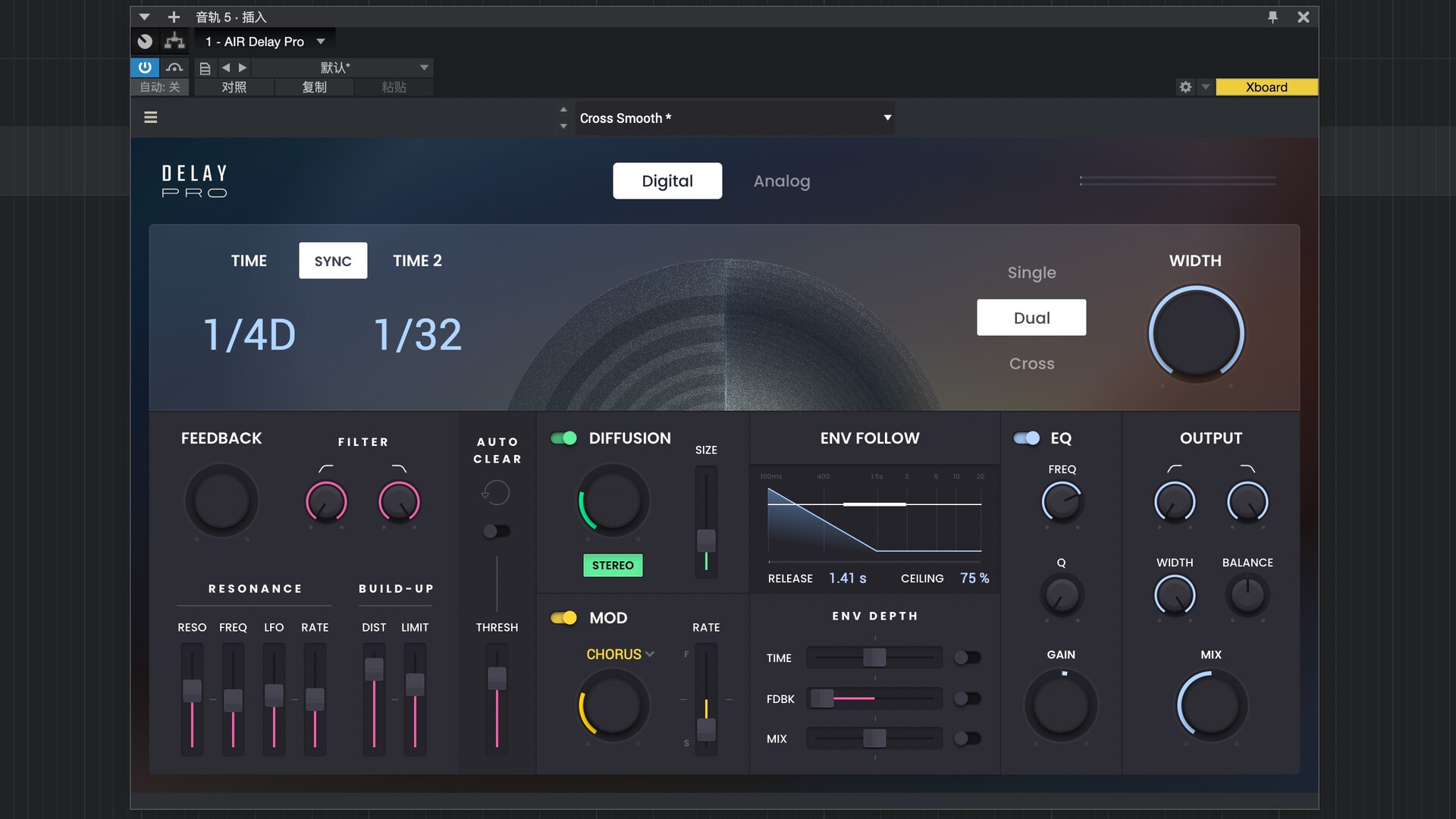包络跟随功能可以随时间塑造延迟效果……从细微到极致。