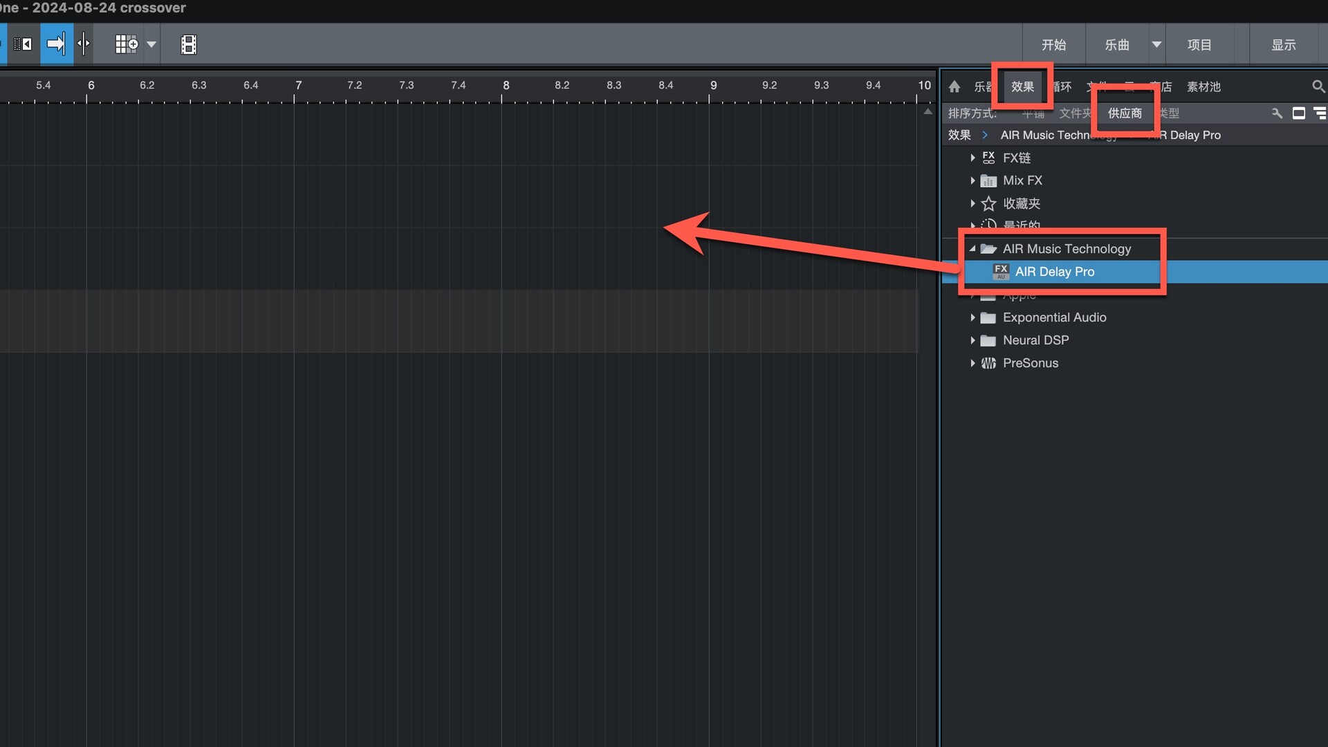 打开Studio One在效果-供应商下即可找到插件,拖动到左侧即可
