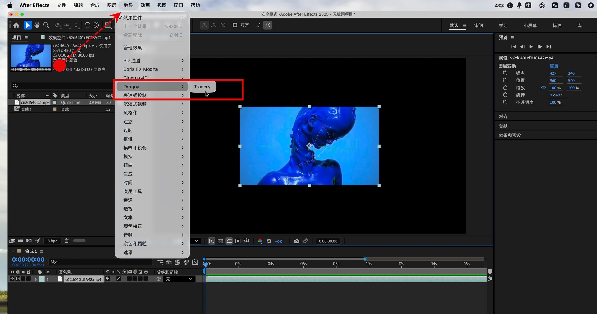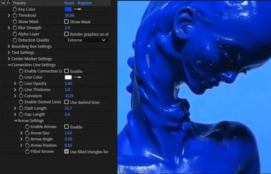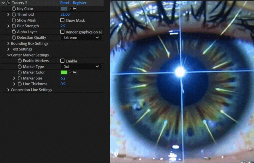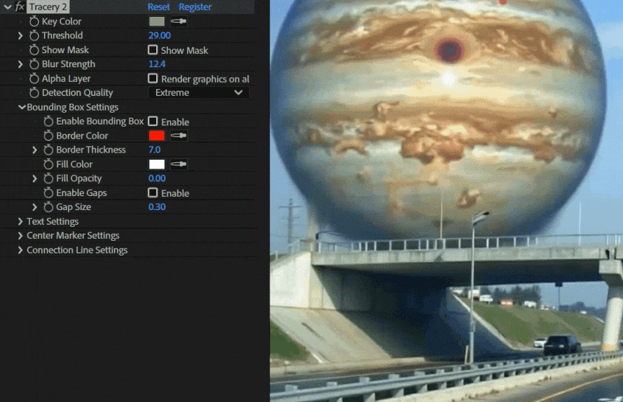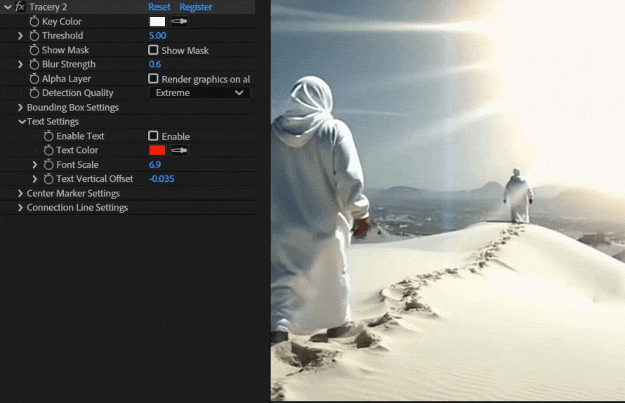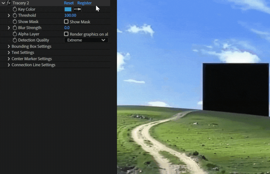 - 无需传统关键帧即可追踪色块和区域。只需选择一种颜色,Tracery 即可在整个合成中自动追踪该颜色。