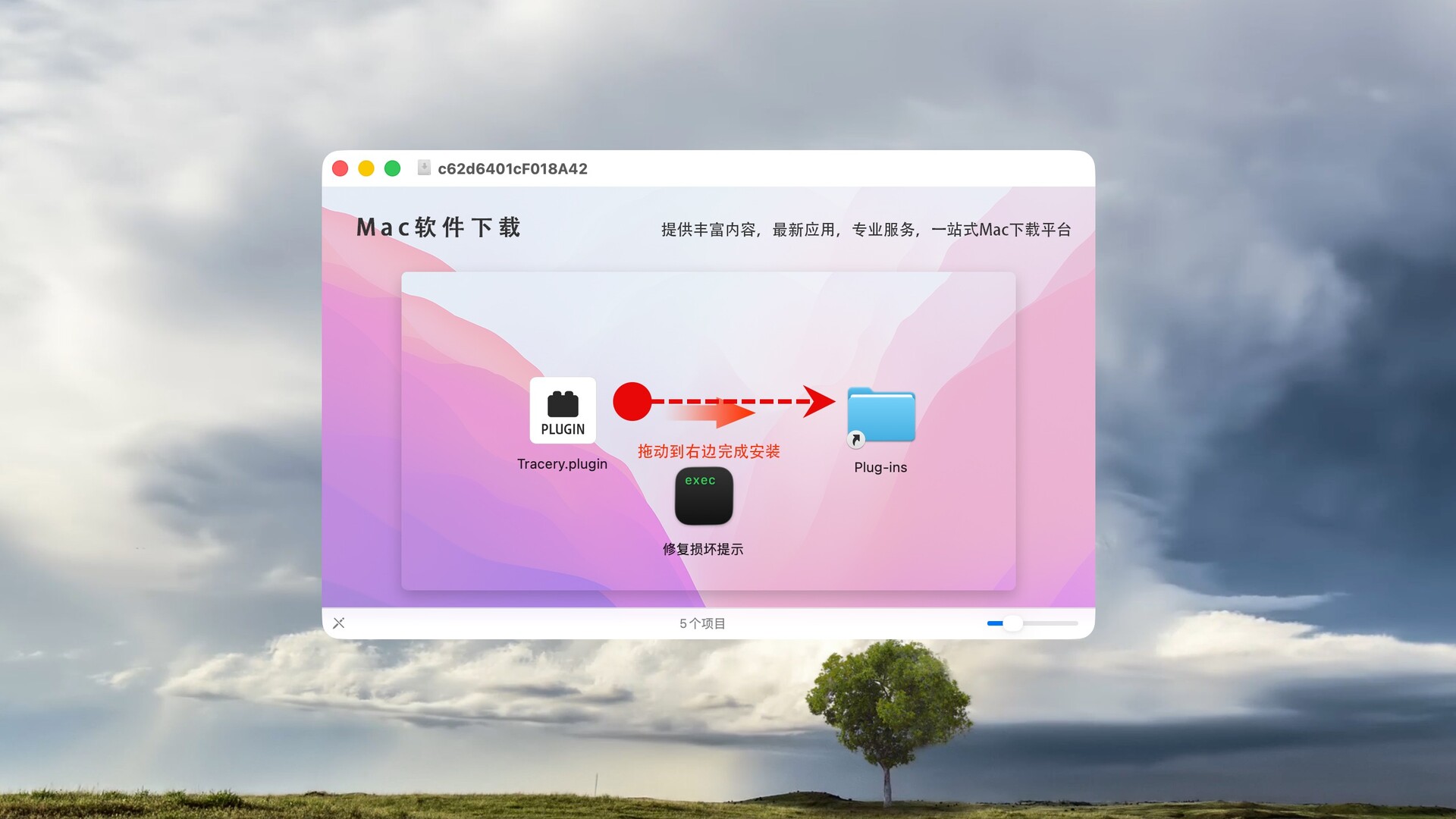 将Tracery拖动到右侧的Plug-ins文件夹中即可,如图