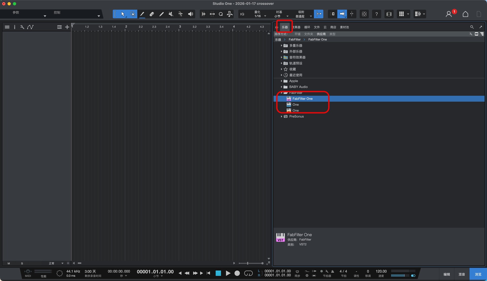 打开studio one在乐器和效果中即可找到安装好的插件,如图: