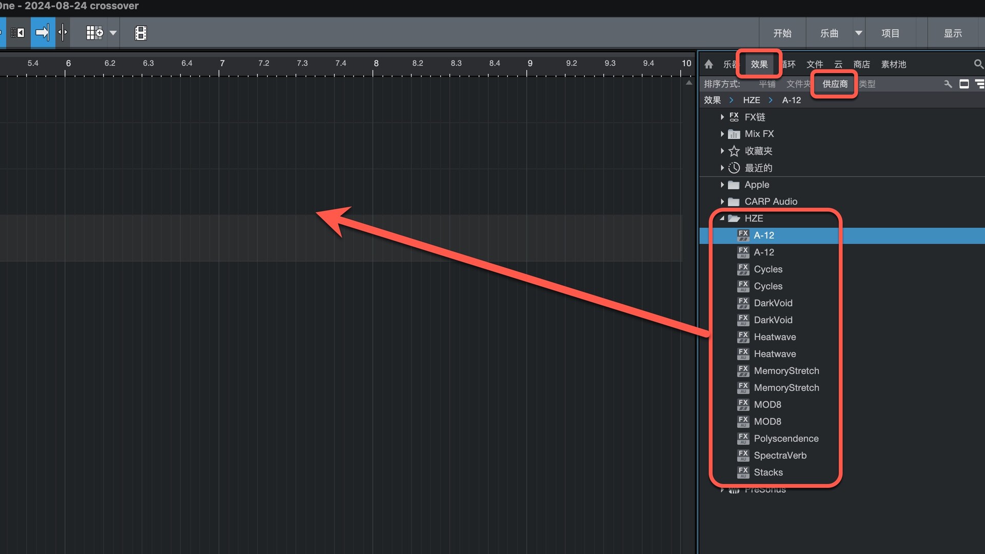 打开Studio One在效果-供应商下即可找到插件,拖动到左侧即可
