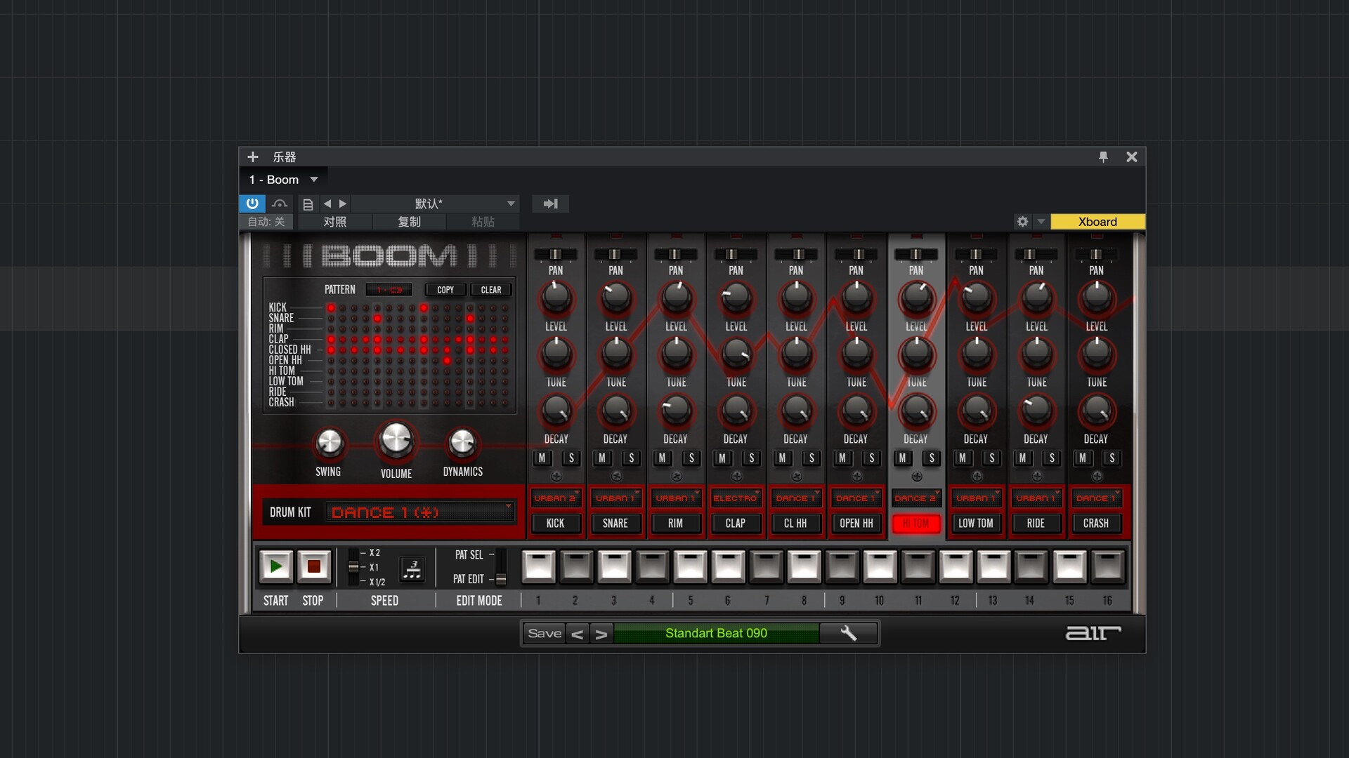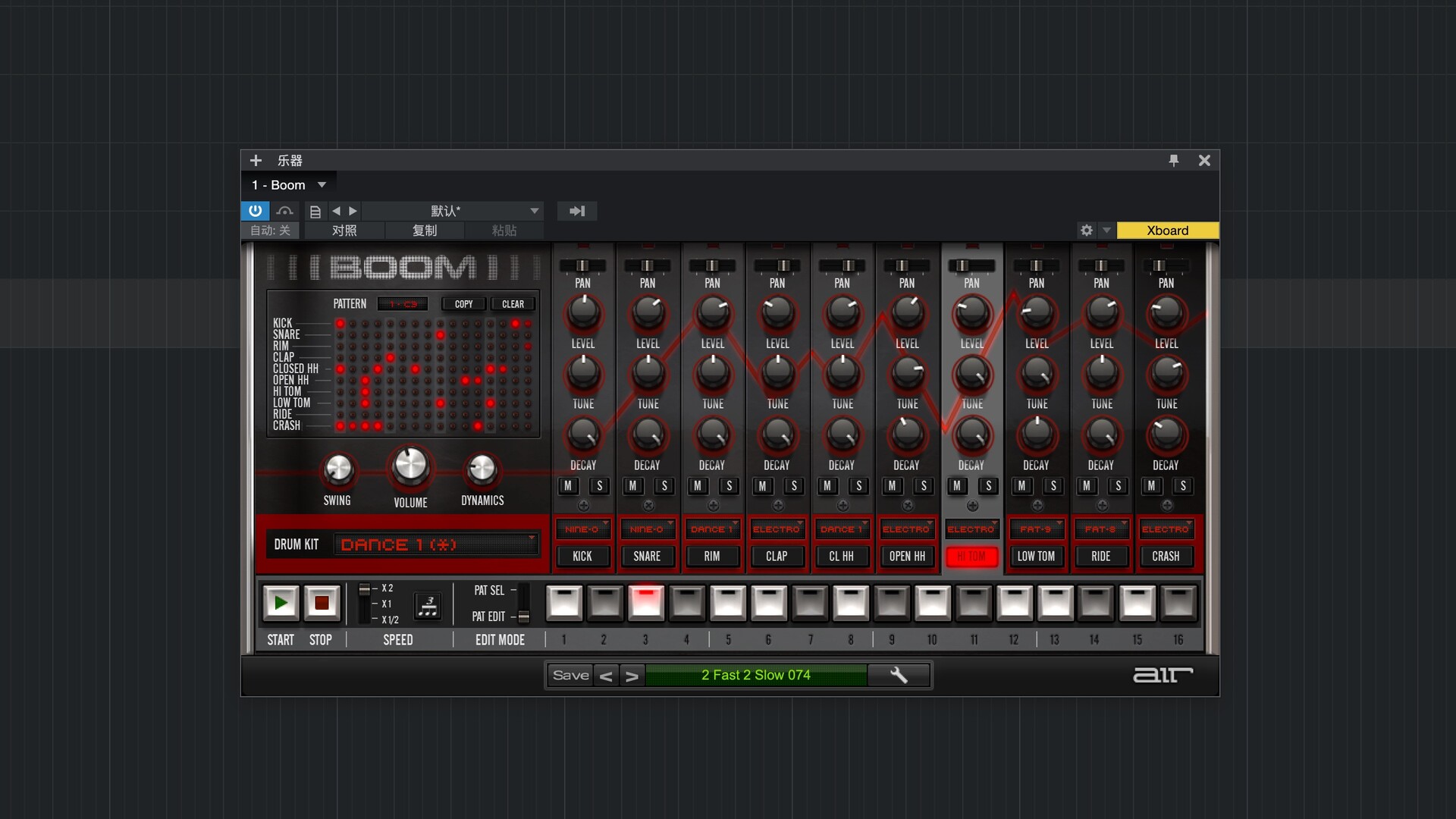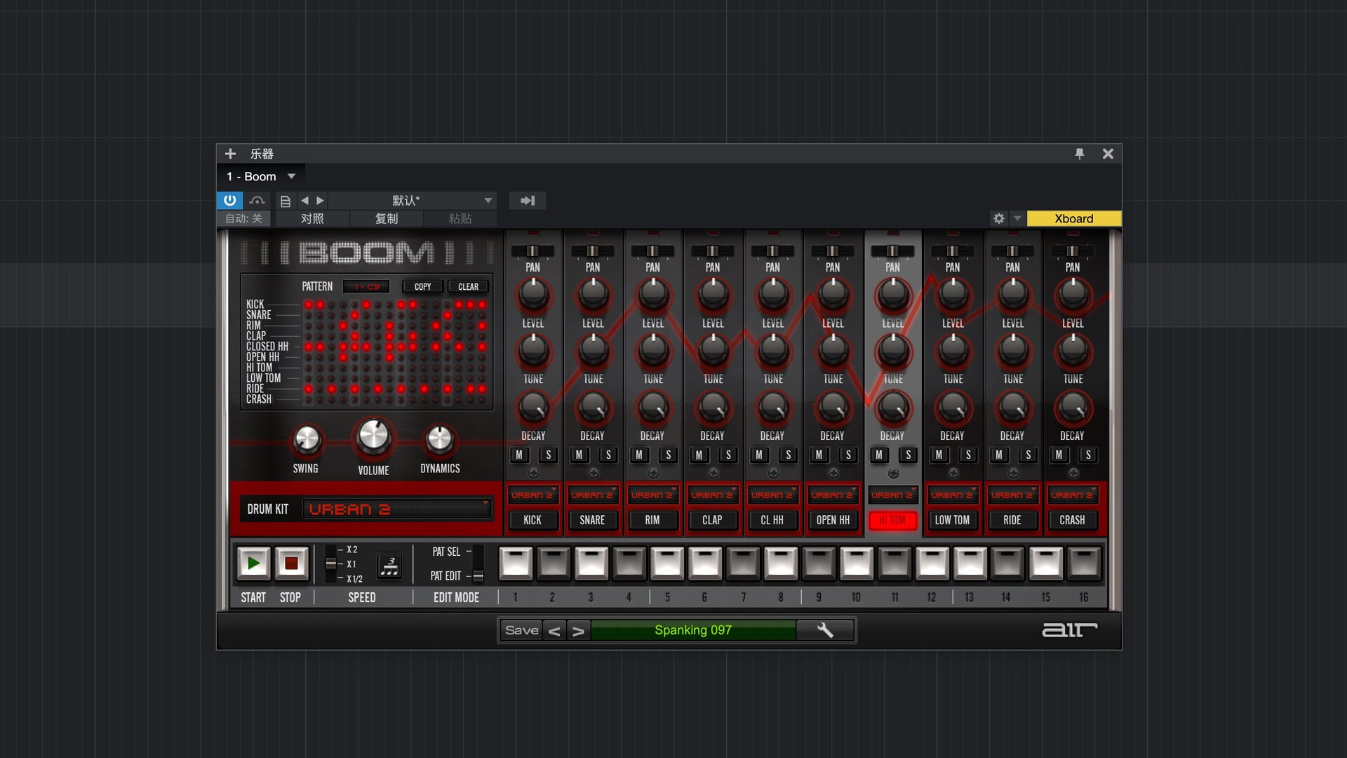Boom包含 10 种不同的经典电子鼓组,提供经典 808 和 909 鼓组的变体、更具冲击力的舞曲和都市风格鼓组,以及一款以“CR78 与 606 融合”为理念打造的强劲复古风格鼓组。每一款鼓组都经过精心打造,注重细节,带来震撼的音效。