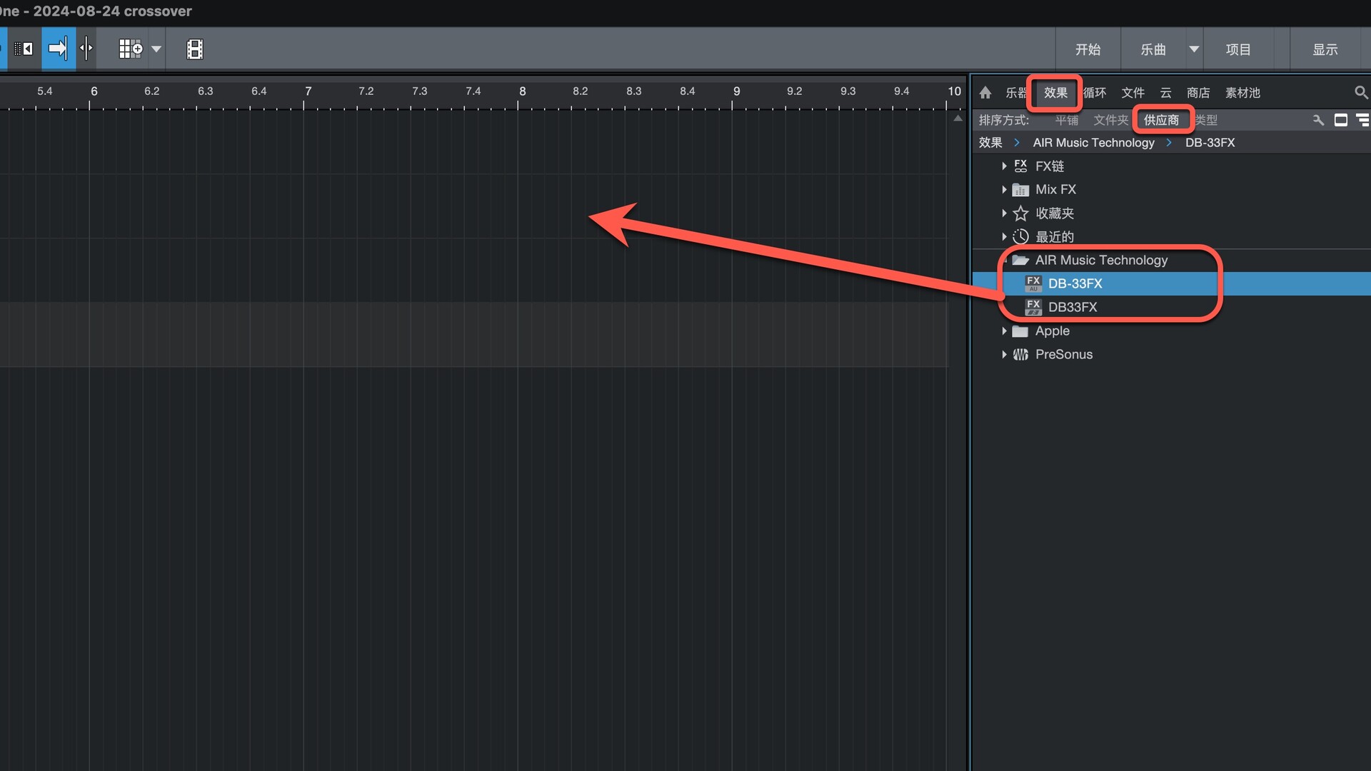 打开Studio One在效果-供应商下即可找到插件,拖动到左侧即可