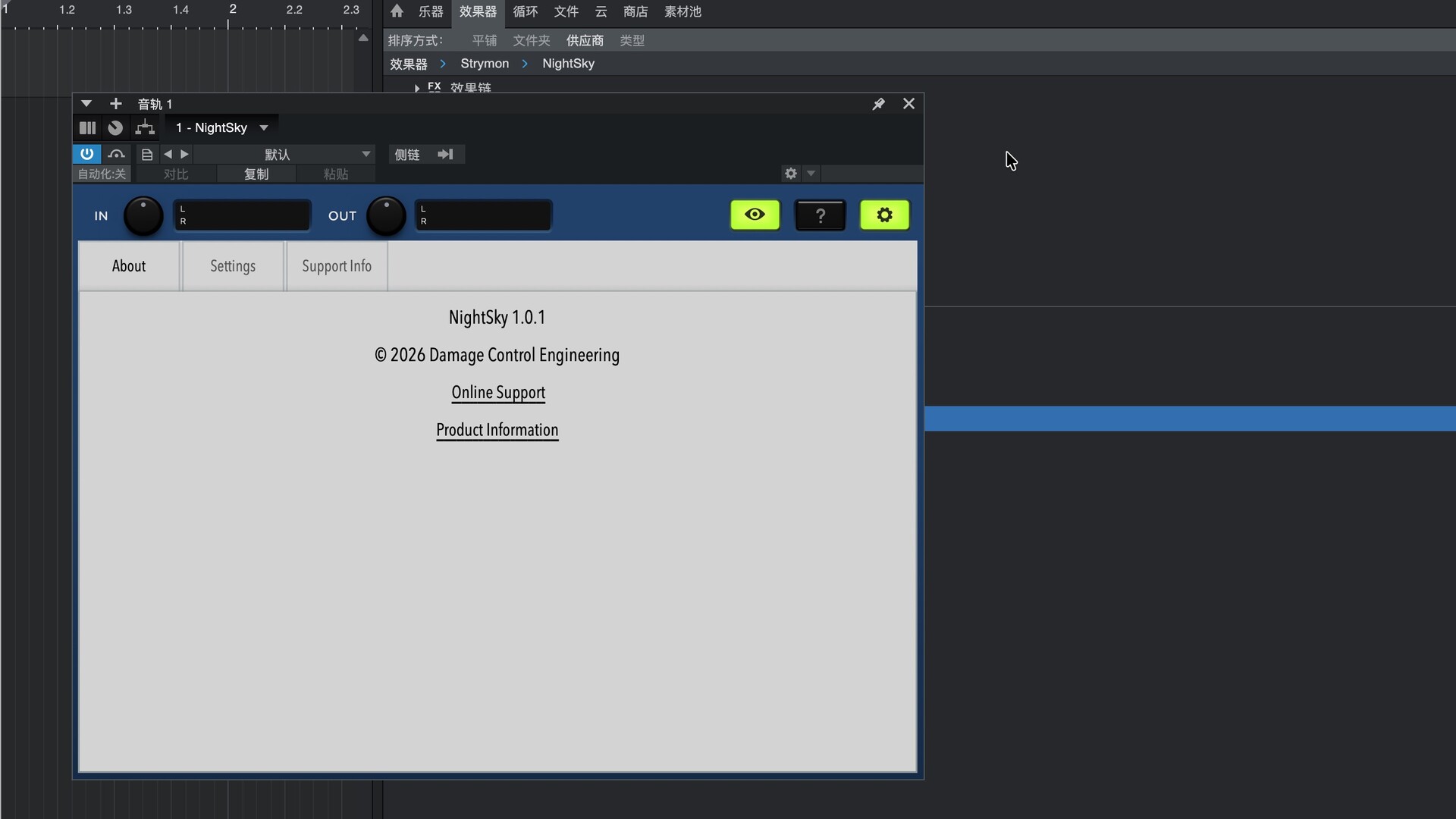 打开studio one,在效果-供应商处找到安装好的Strymon NightSky插件
