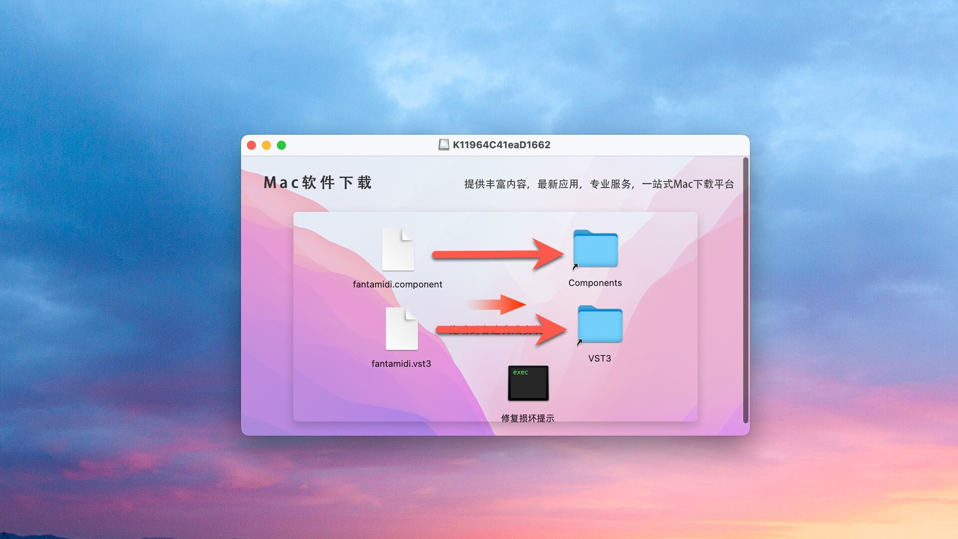 插件必须搭配Studio One一起使用,请先安装Studio One!安装包下载完成后打开,将左侧文件拖动到右侧文件夹中