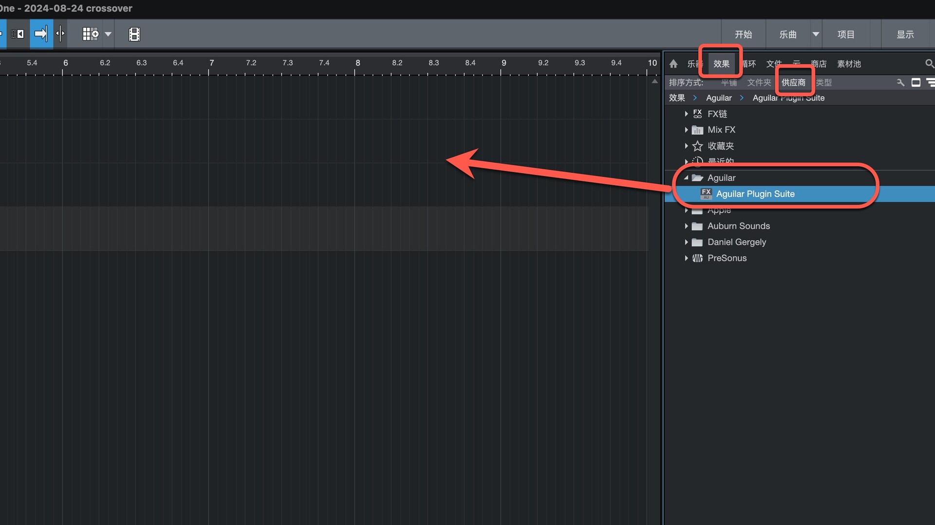 打开Studio One在效果-供应商下即可找到插件,拖动到左侧即可