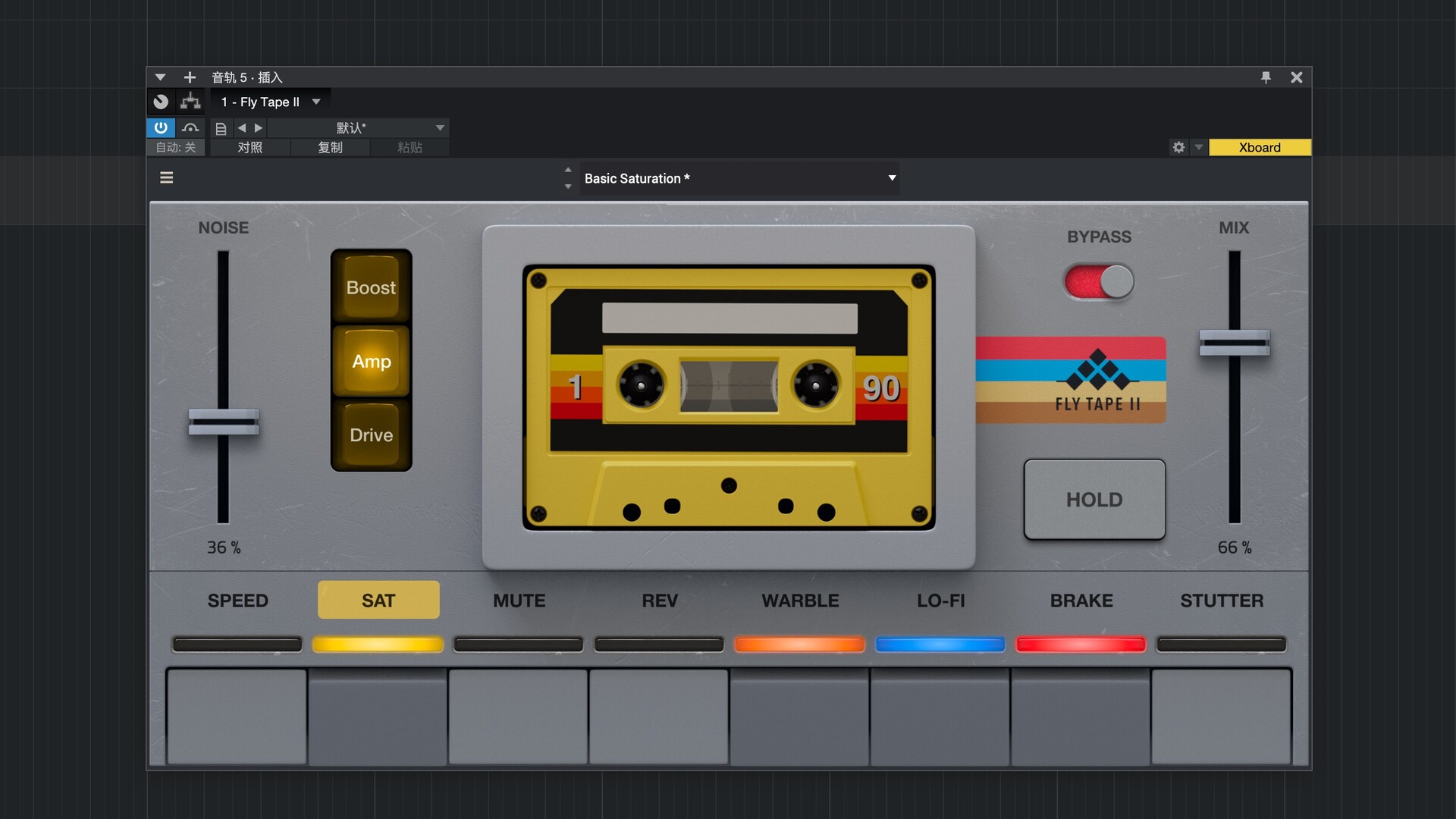 给你的鼓组加厚失真,反转并饱和你的混音总线,用磁带停止效果处理间奏,将弦乐垫音带入复古领域,或者颤音和拉伸你的电钢琴,使其完美融入你的混音。此外,还有一个独立的噪声滑块,你可以将恰到好处的磁带嘶嘶声和噪声融入整体混音中。