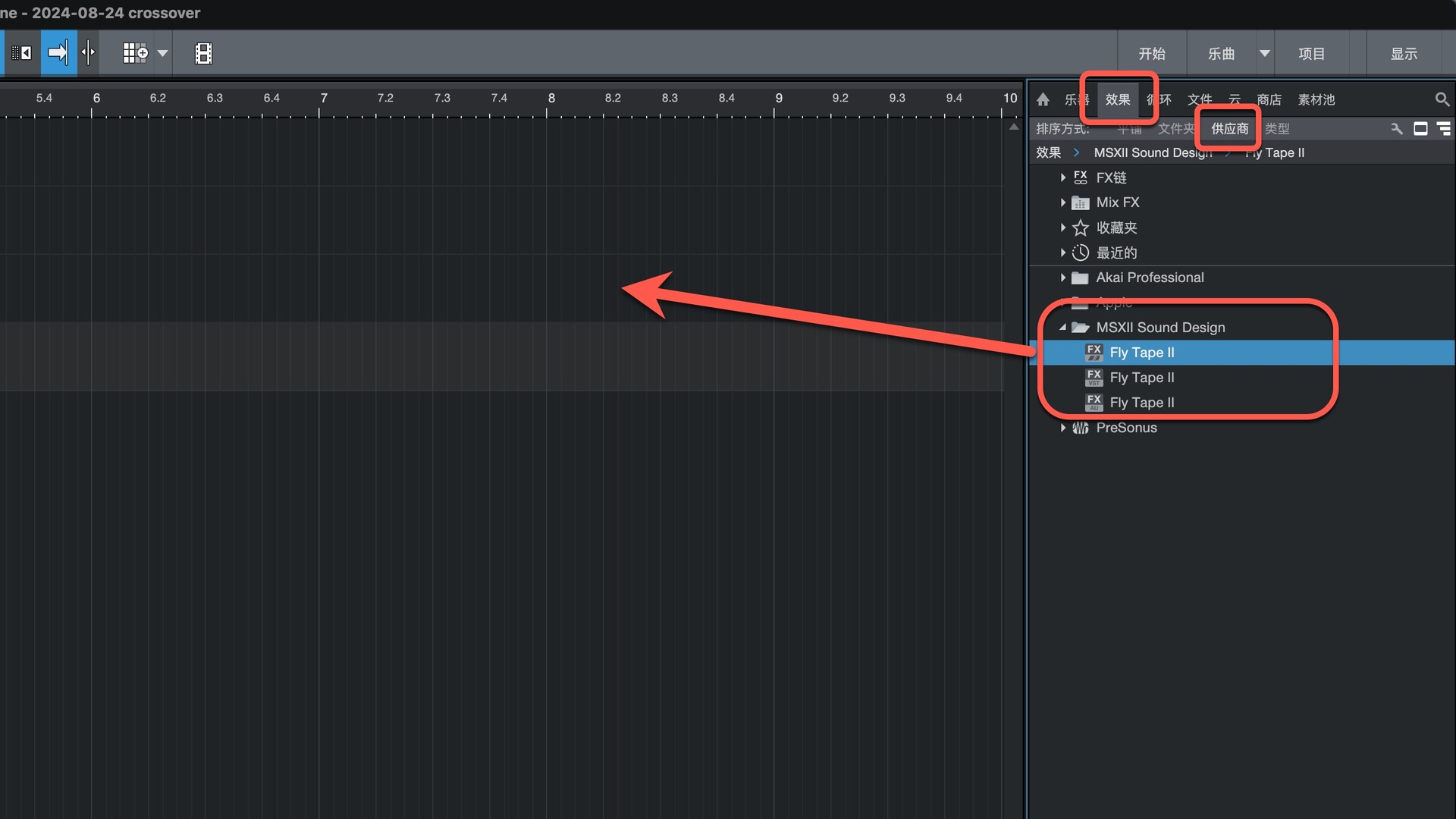 打开Studio One在效果-供应商下即可找到插件,拖动到左侧即可