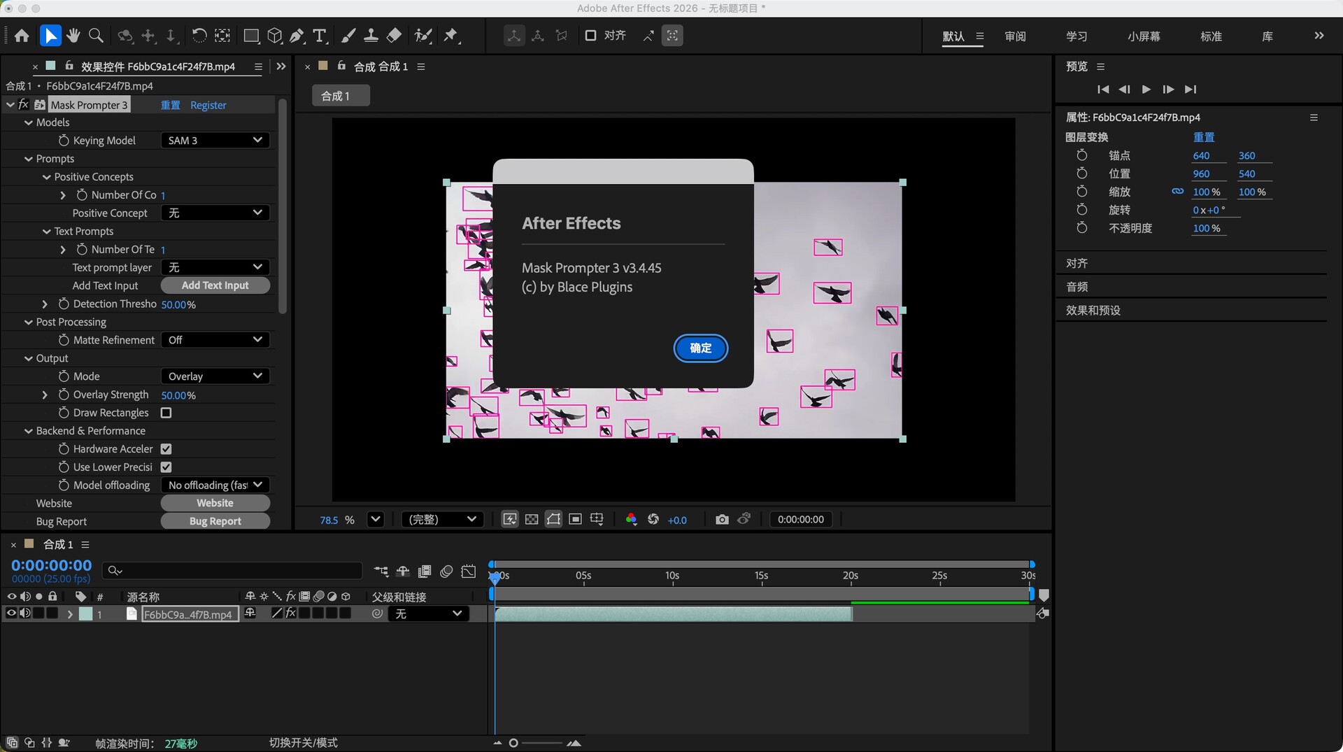 AE插件-AI人工智能遮罩蒙版生成器 Mask Prompter,基于文本输入的AI转描机——告别繁琐的关键帧绘制!只需输入提示,即可完成!现已包含Segment Anything 2.1图像模型。Mask Prompter 3新增了诸多实用功能,例如基于文本的多对象遮罩、矩形绘制以及4个更新的模型。利用AI的力量处理繁琐的工作,让您专注于创作!