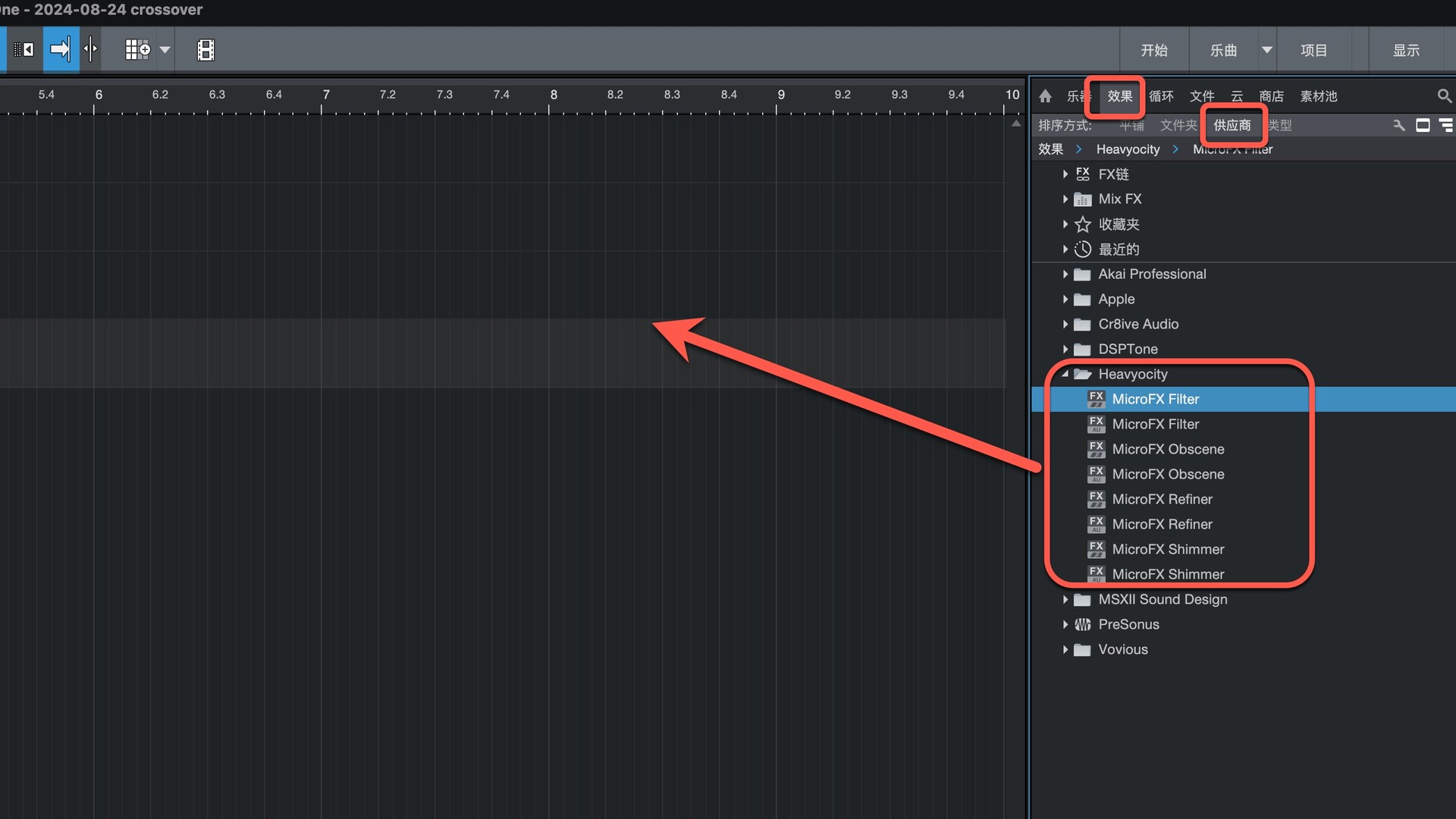 打开Studio One在效果-供应商下即可找到插件,拖动到左侧即可