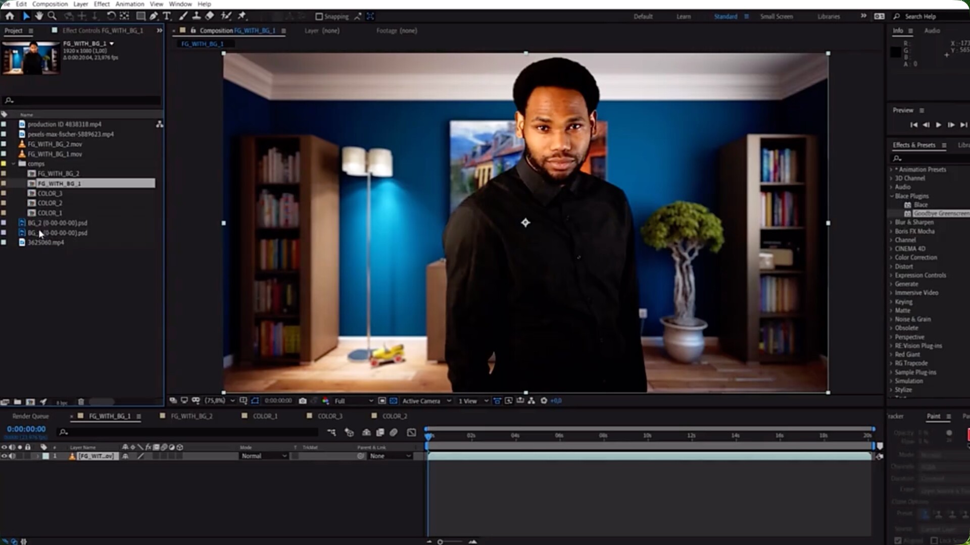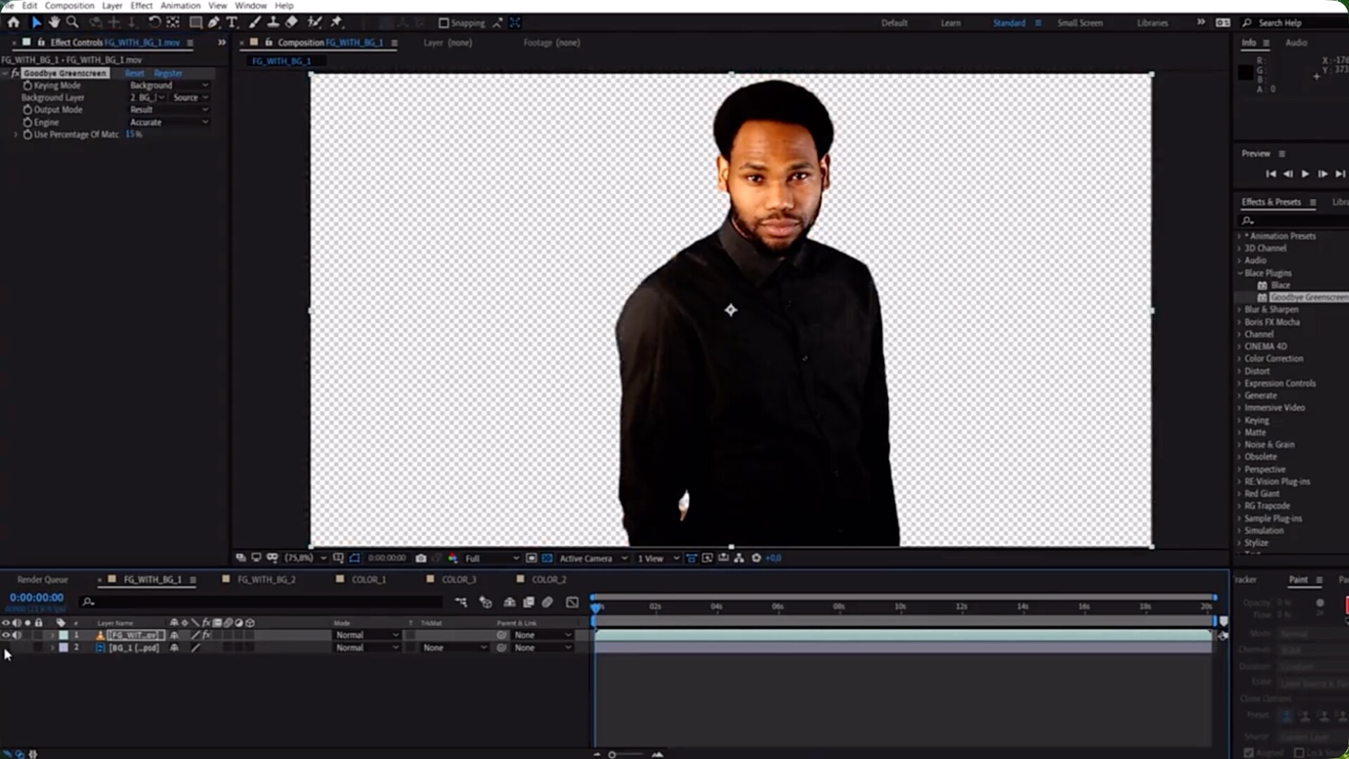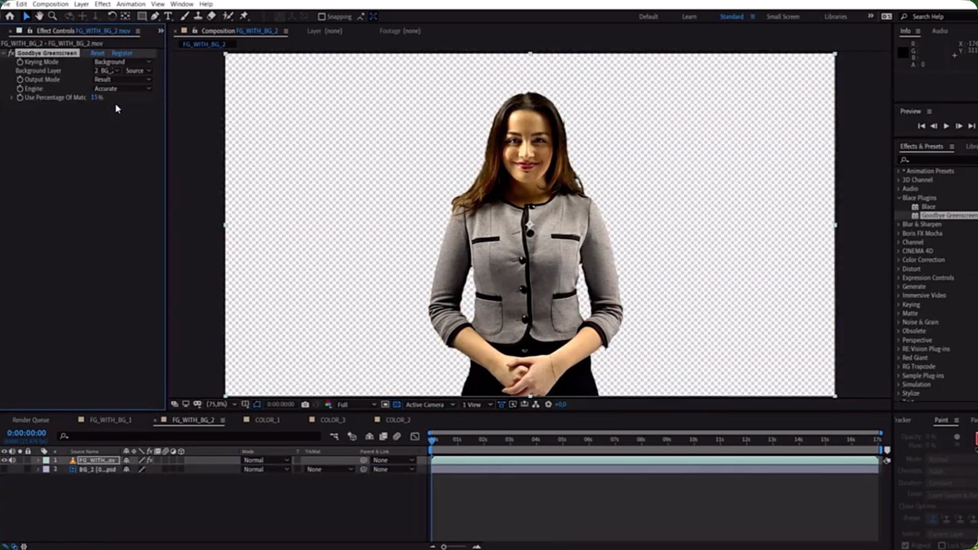 Goodbye Greenscreen 利用人工智能技术,让抠像(无论是单人还是多人)变得轻松快捷。您无需手动遮罩或关键帧操作,即可创建遮罩,既可使用自动化遮罩工作流程,也可使用全新抠像工作流程。