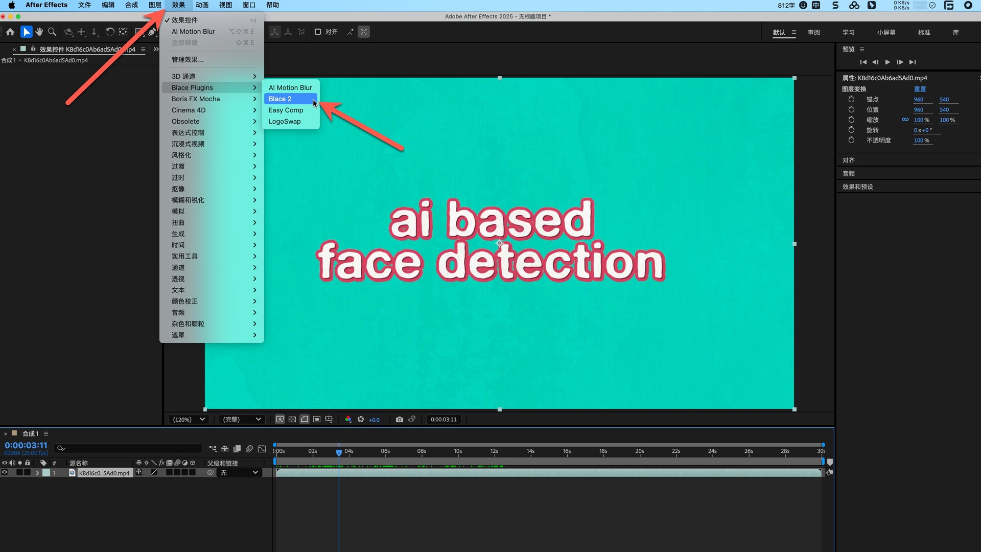 打开AE在效果即可找到安装好的插件,如图
