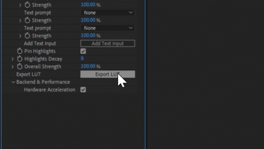 - 您可以随时将调色设置导出为 .cube LUT 文件,并在所有支持 LUT 的剪辑软件中使用它。这样,您可以“锁定”调色设置,并在没有安装相应插件的软件环境中应用它。