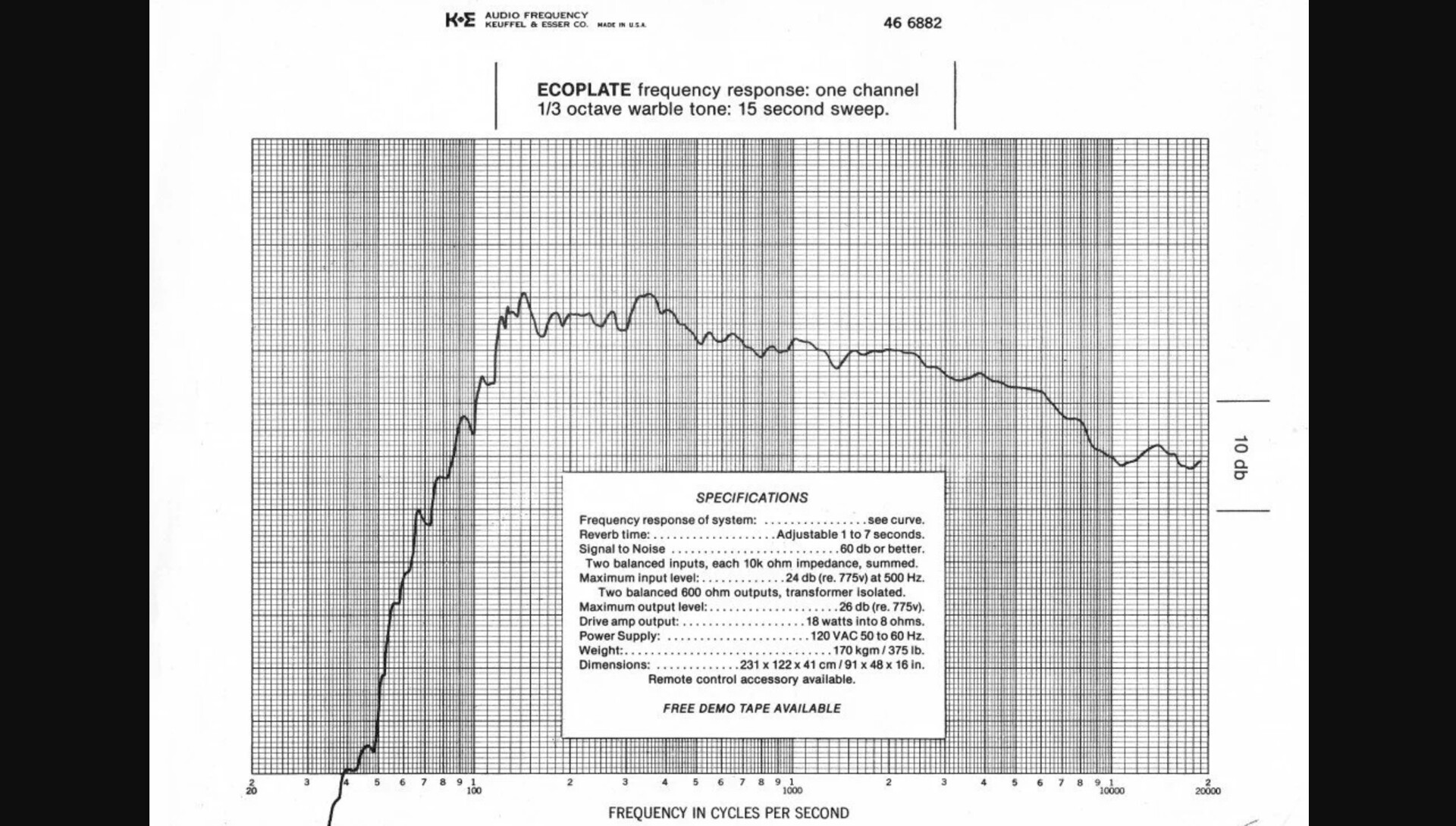 混响尾音长度从 1 秒到 12 秒(该设备在最大设置下实际可产生超过 12 秒的衰减)。