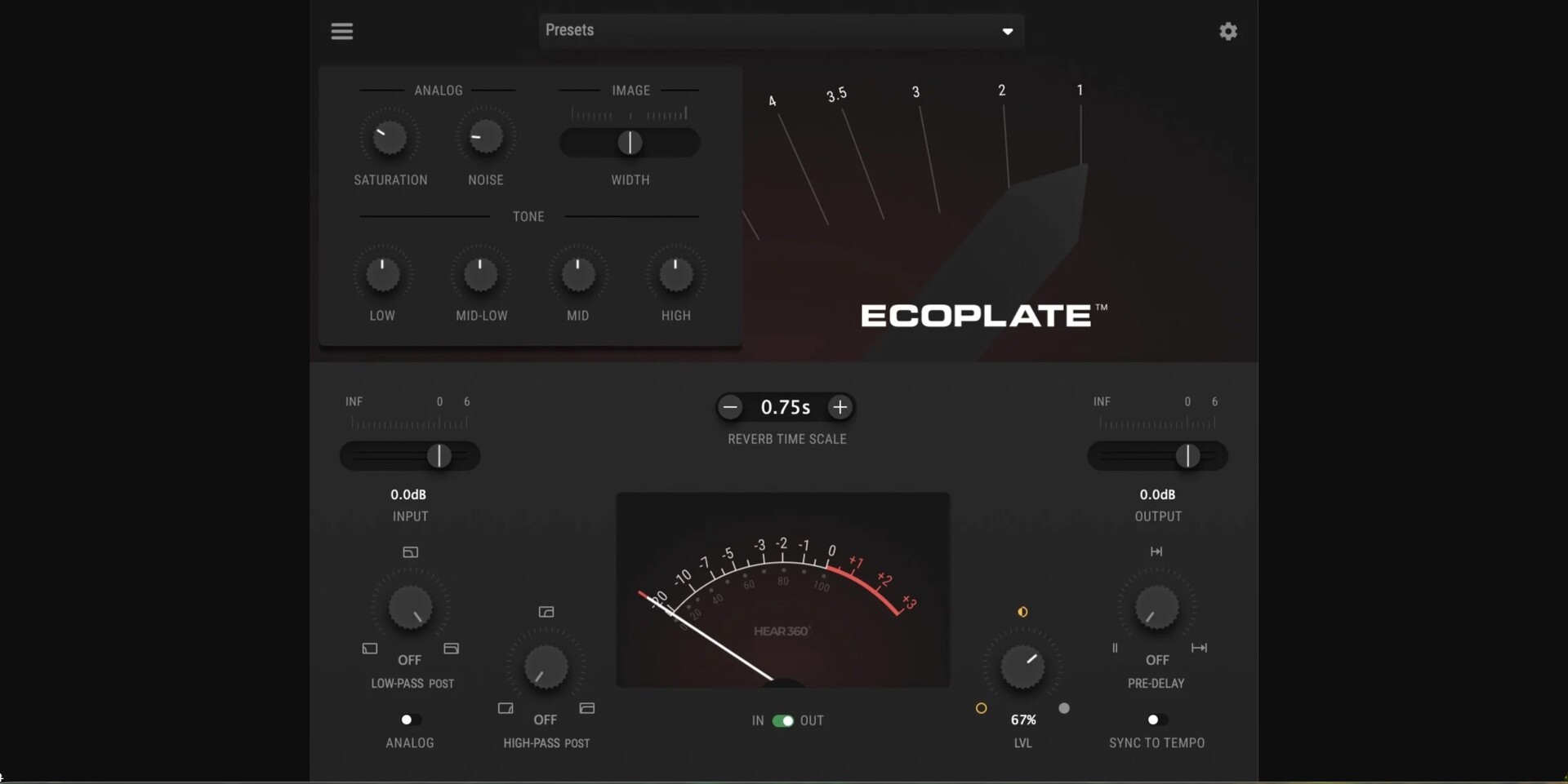 HEAR360 Ecoplate for mac一款功能强大、音色丰富的板式混响插件,让工程师和制作人能够在自己的工作室中方便地使用原版 Ecoplate I,而无需购置难以找到且笨重的模拟设备。