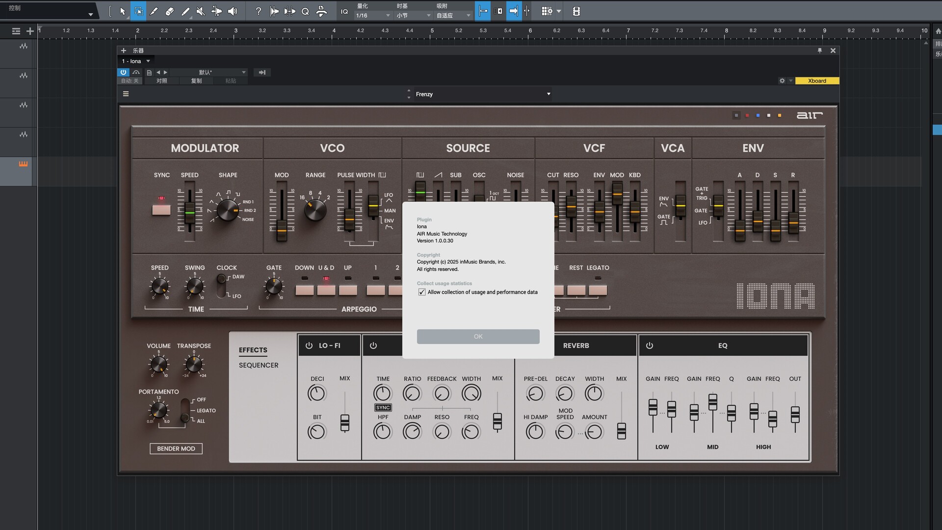 使用 Iona 内置的 100 多个出厂预设,即可立即开始尝试新音色并录制您的创意。乐器的效果器部分将低保真音效、强劲的延迟、宽广的混响和均衡控制清晰地显示在屏幕上,方便您随时进行调整。