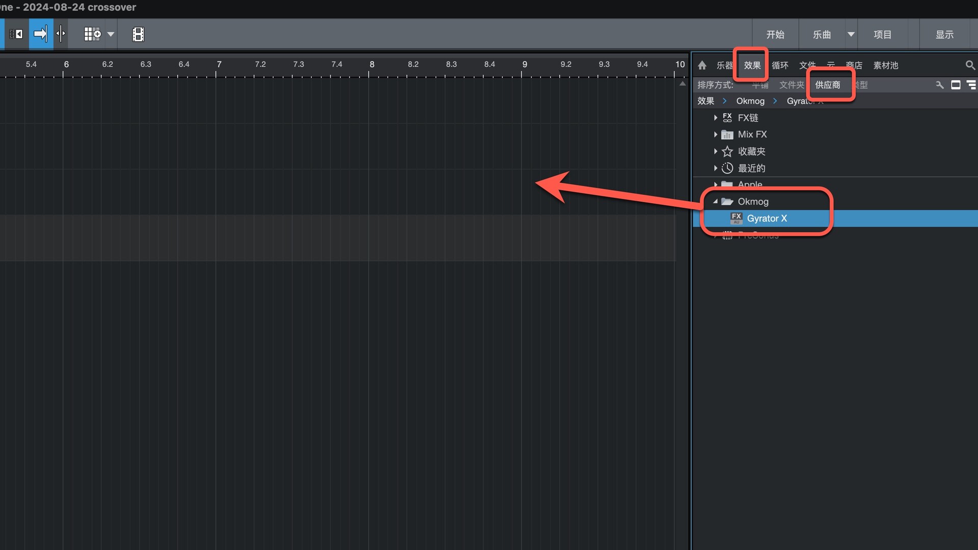 打开Studio One在效果-供应商下即可找到插件,拖动到左侧即可