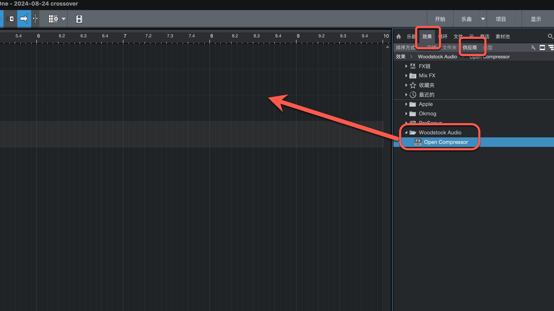 打开Studio One在效果-供应商下即可找到插件,拖动到左侧即可