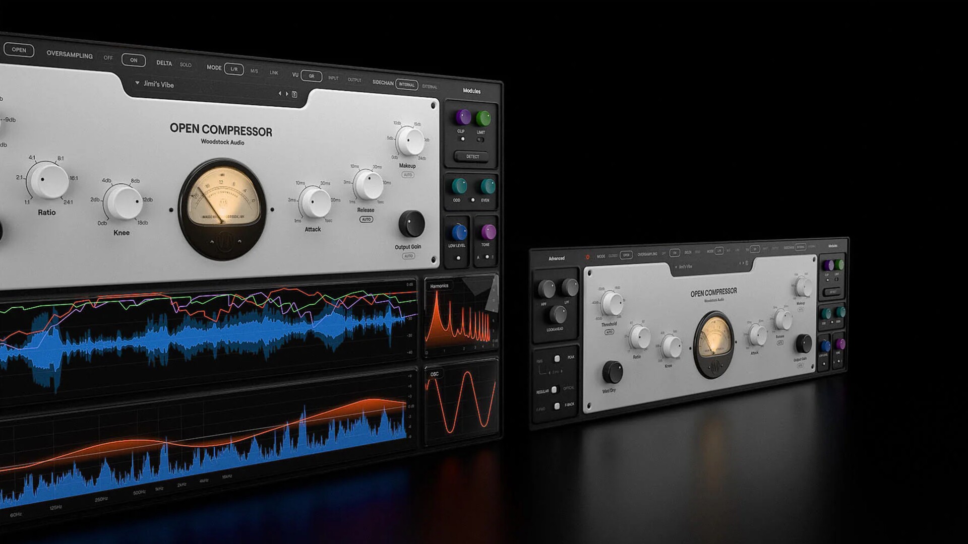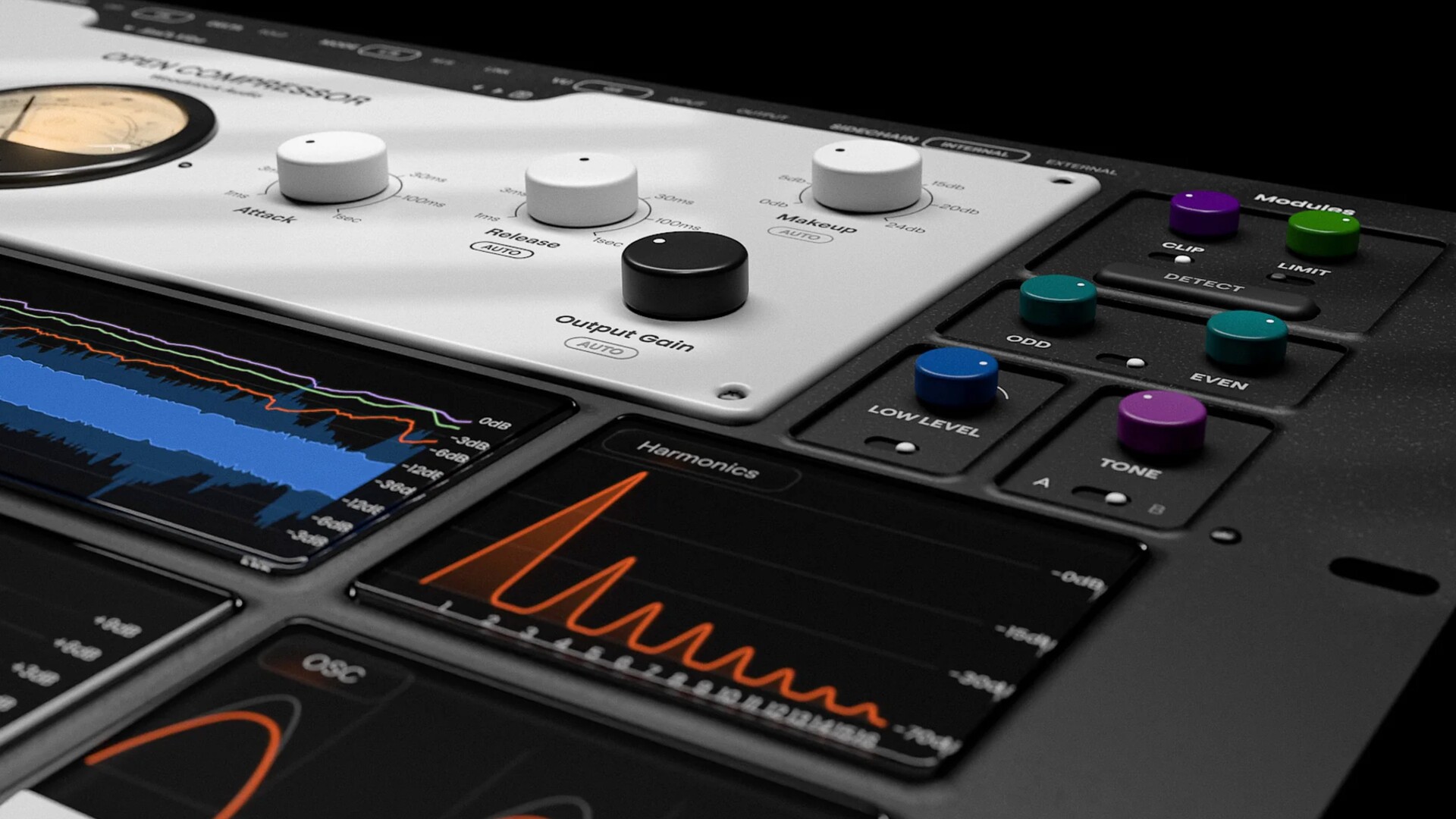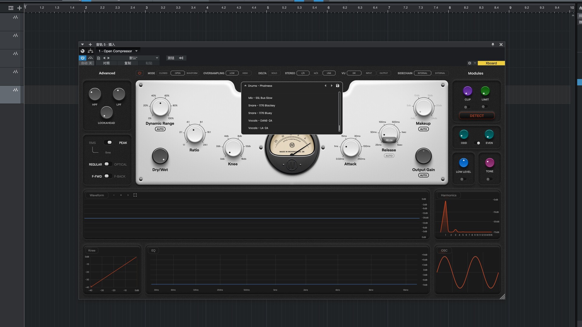 Open Compressor 融合了所有你喜爱的压缩器的核心组件,并增加了削波、限制、自动阈值等功能。