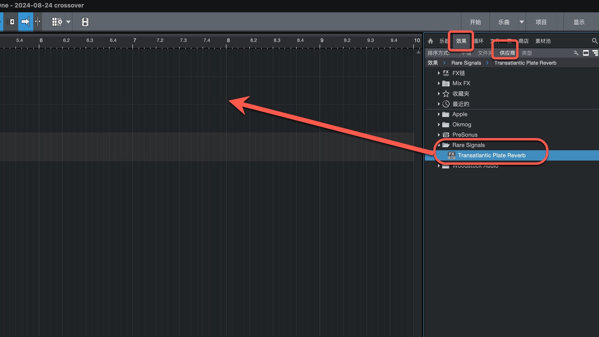 打开Studio One在效果-供应商下即可找到插件,拖动到左侧即可