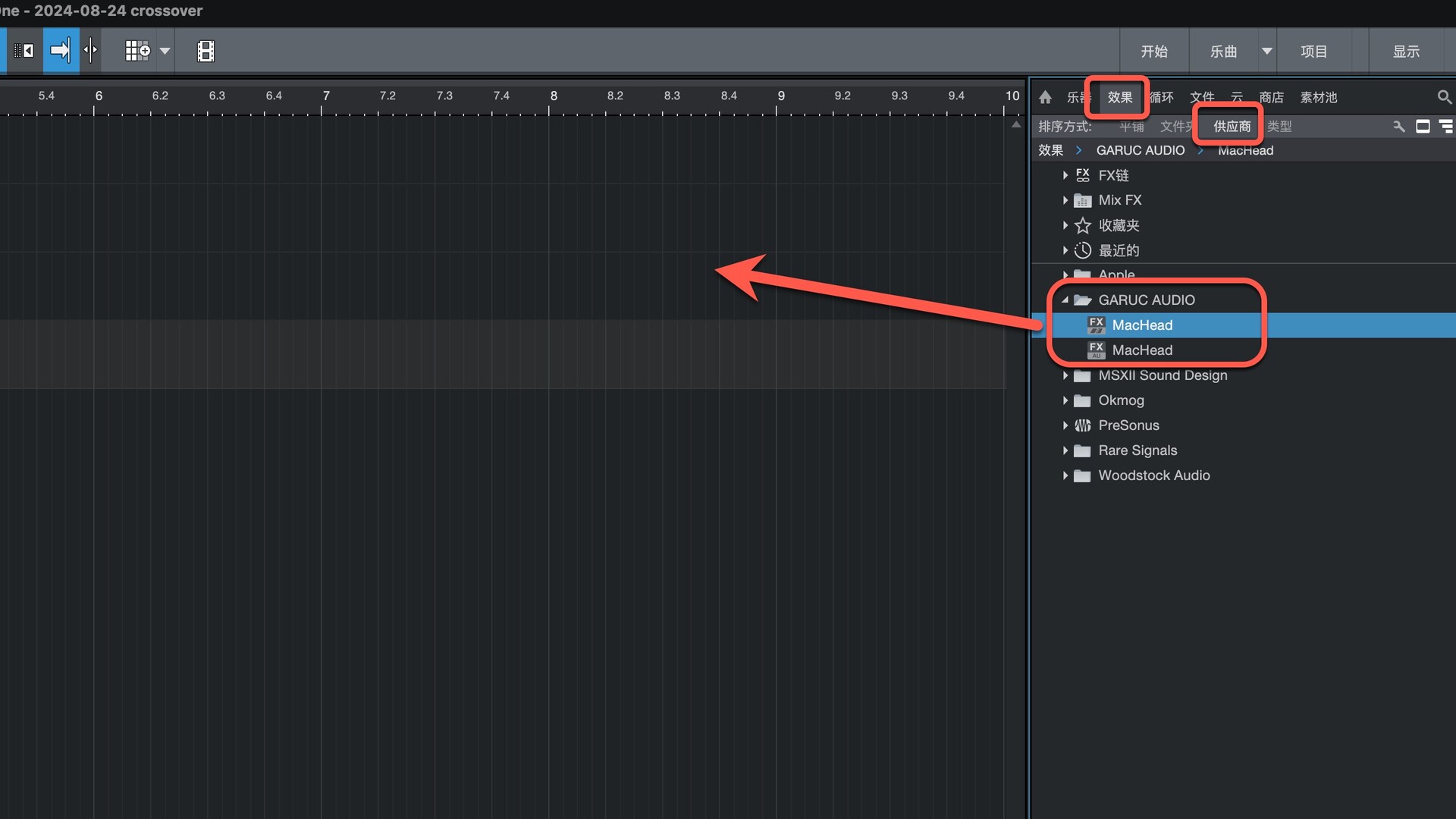 打开Studio One在效果-供应商下即可找到插件,拖动到左侧即可