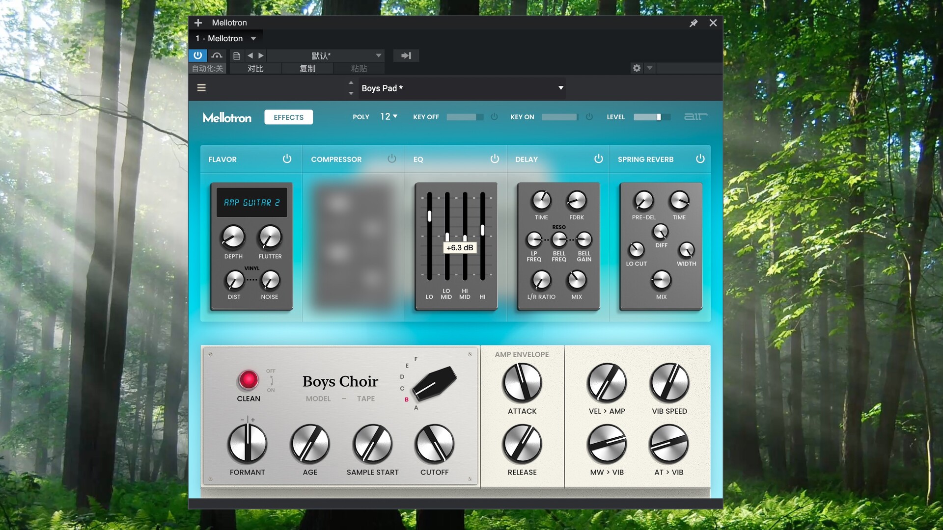 全新的 Mellotron 插件乐器专为创意音乐制作而设计,拥有丰富的参数、设置和控制选项,可打造种类繁多的键盘乐器音色。您可以先从内置音色类别入手,然后探索各种音色塑造模块,尤其是全新的 Flavor 模块。