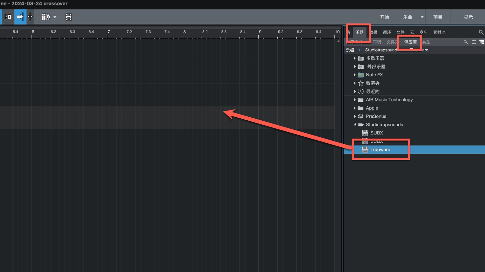 VST3 路径:/Library/Audio/Plug-Ins/VST3打开Studio One在乐器-供应商下即可找到插件,拖动到左侧即可
