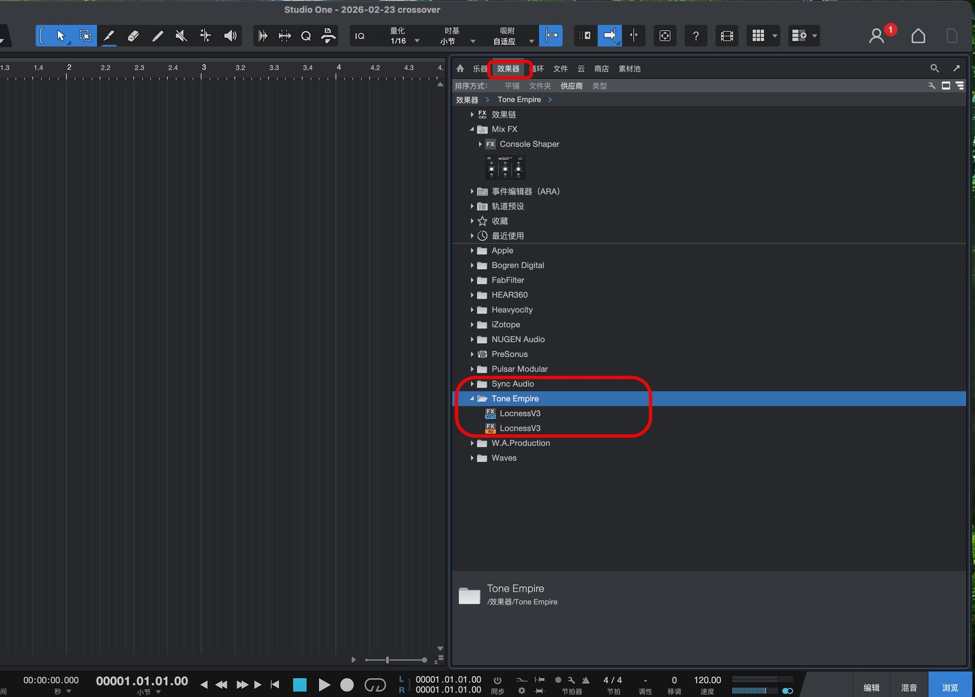 打开studio one,在效果-供应商处即可找到安装好的插件