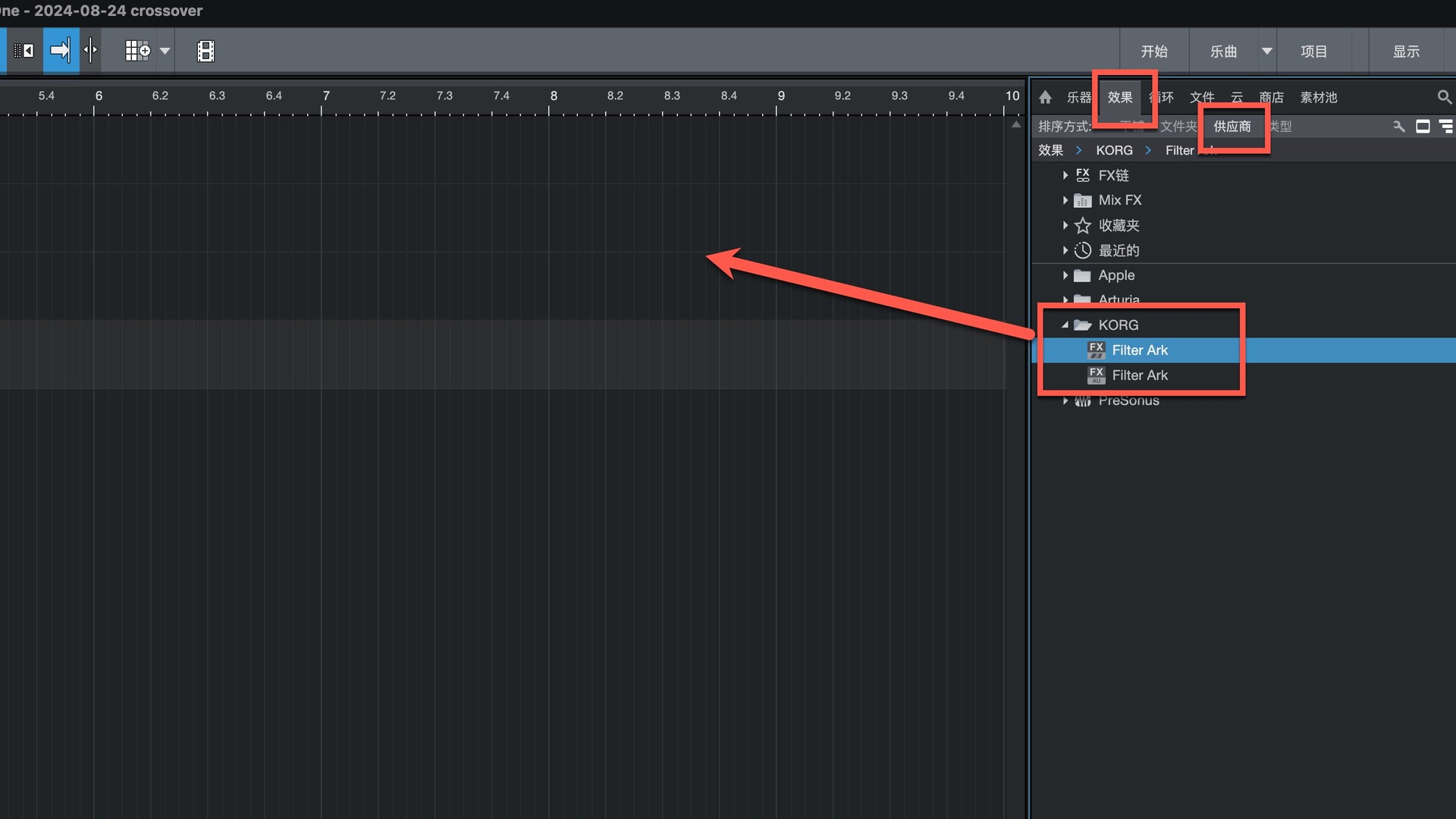 打开Studio One在效果-供应商下即可找到插件,拖动到左侧即可