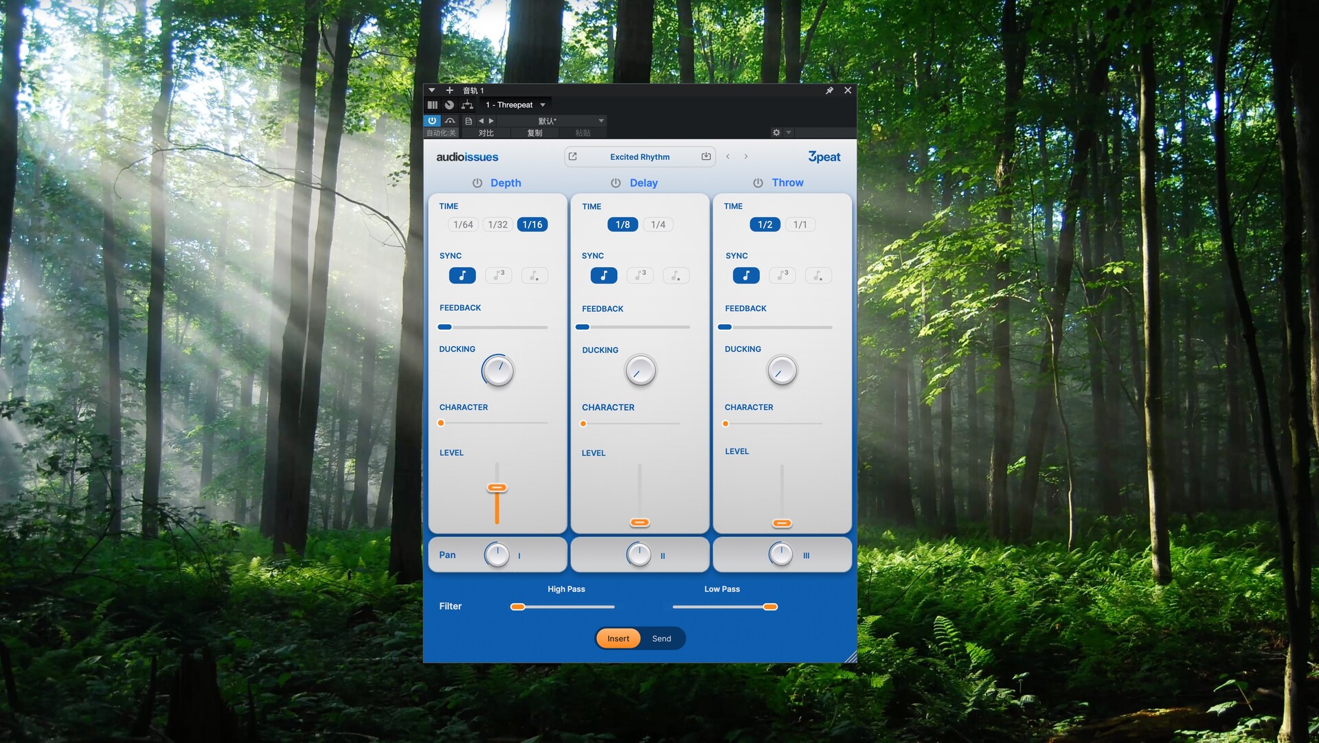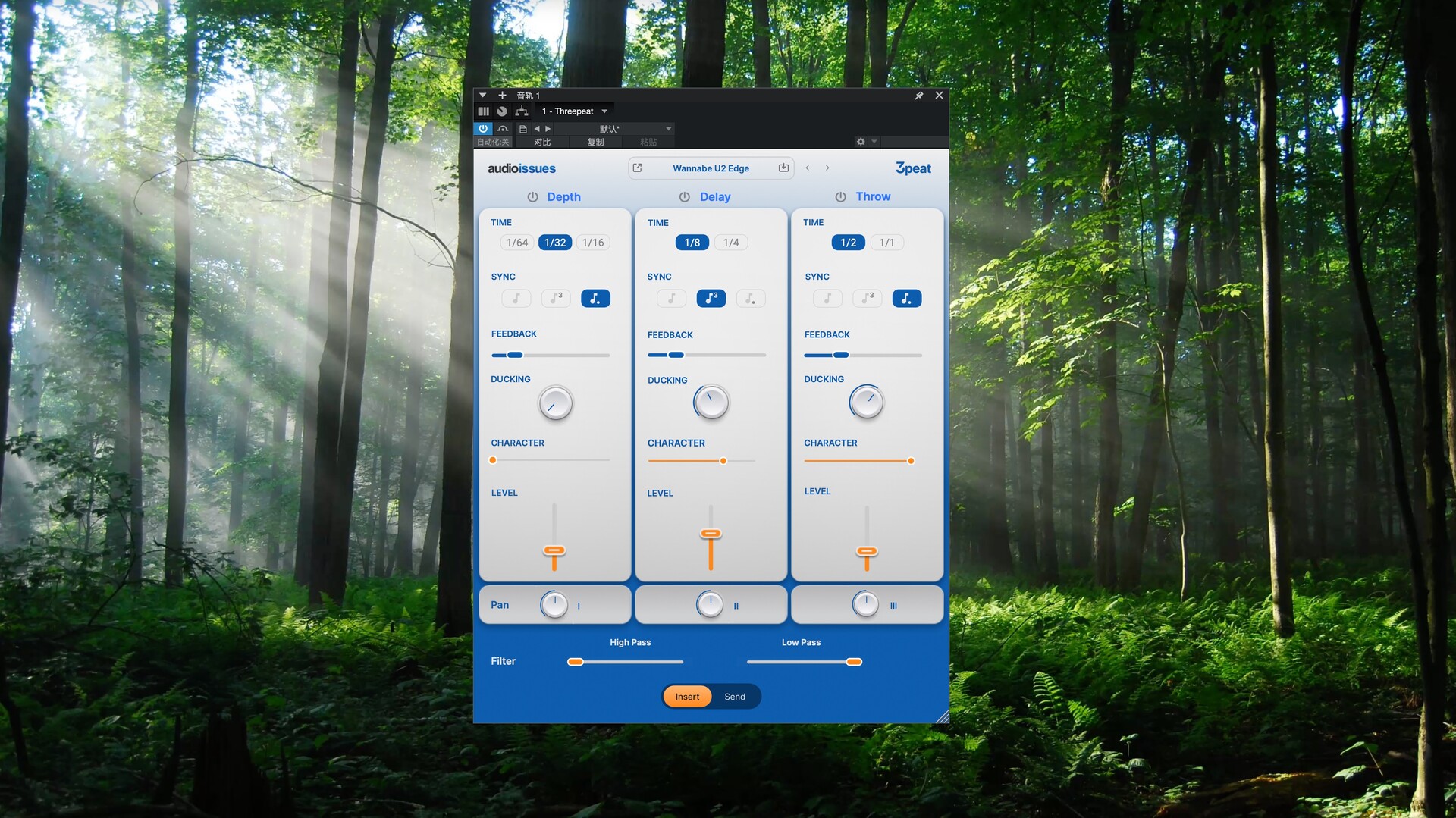 利用高通和低通控制,调整延迟音色,使其完美融入混音。