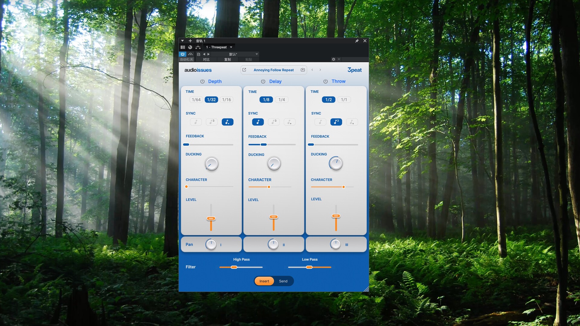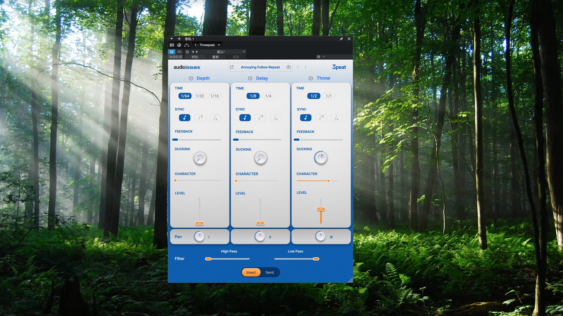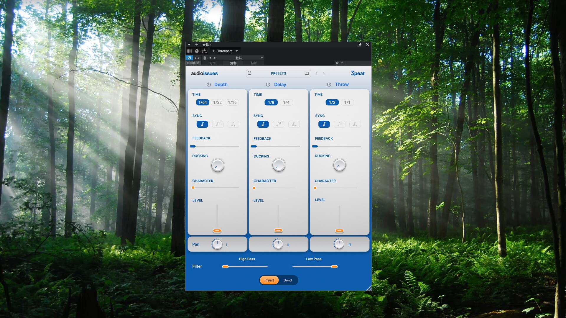 Audio Issues Threepeat for Mac拥有三个专为创意而生的延迟引擎,助您打造深度、节奏和氛围。无论您需要立体声深度、节奏感十足的重复效果,还是饱满的回声,Threepeat 都能让延迟再次变得有趣、快捷且富有音乐性。无需复杂的路由设置,无需繁琐的调制,即可获得即时效果。